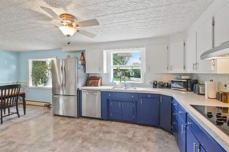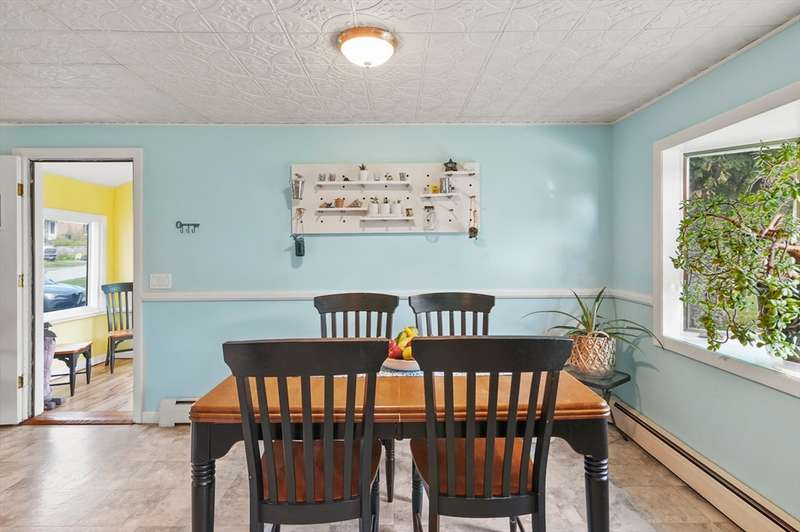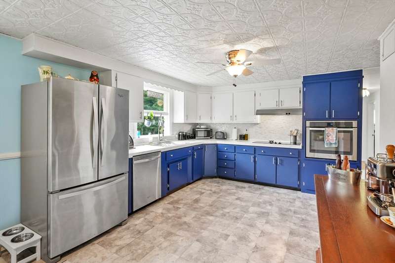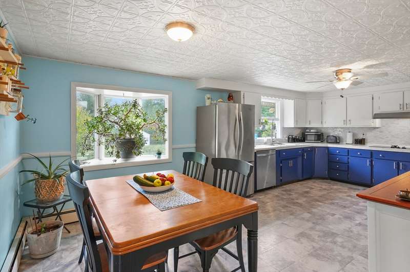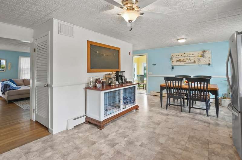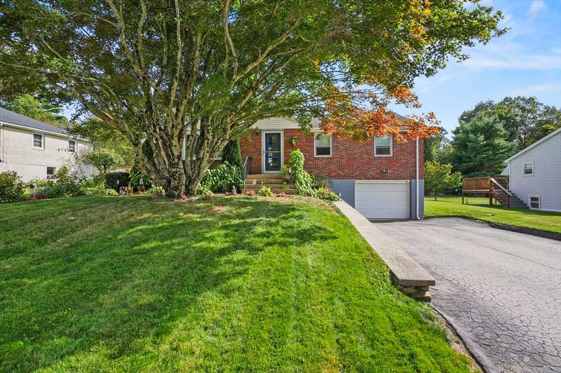 **Offer Deadline 9/22/2025 at 4:00 pm please make offers good until 10:00 PM 9/22/2025. Thank you! **Welcome to this ranch-style home nestled on a dead-end street in desirable Dudley! The main level features a bright living room with hardwood floors, a floor-to-ceiling white brick fireplace, and a large picture window, plus a spacious kitchen with dual-tone cabinetry, stainless steel appliances, and generous countertop space. A bay window accents the dining area, while the vaulted-ceiling sunroom offers an inviting retreat filled with natural light. Down the hall you’ll find three bedrooms and a full bath with dual vanity. The partially finished lower level provides two large bonus rooms and a half bath, perfect for flexible living space. Outside, a covered walk-out patio leads to a large yard with a fire pit and ample gardening space. A storage shed, invisible fence, attached garage, and plenty of parking complete the package.
