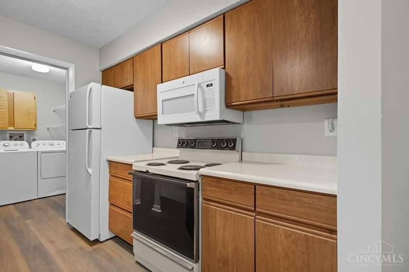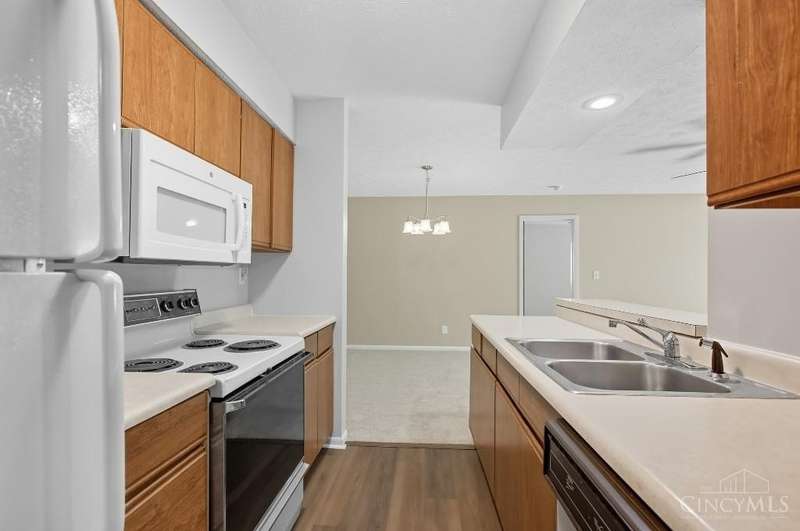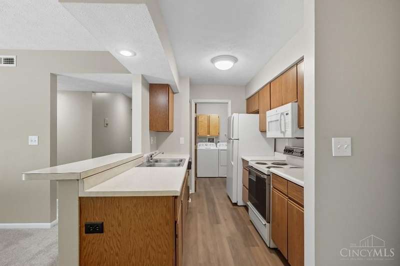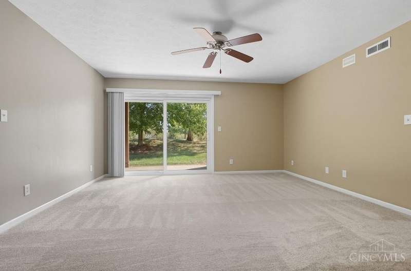 Rare opportunity: first floor condo, with garage overlooking greenspace located in the desirable Village at Willow Creek community. This 2 bedroom, 2 full bath condo has a split bedroom floor plan, with walk in closets, open living room, breakfast room & kitchen concept. Spacious primary has adjoining private bath. New carpet & LVP flooring, new blinds, updated bath vanities, lighting, some new paint, newer refrigerator & microwave. Washer & dryer stay. Covered rear patio, Common area hall closet provides additional storage and is close to unit, Secure building entry. Enjoy one floor, low maintenance living and all the recreational amenities the community has to offer: pool, clubhouse, exercise, tennis.