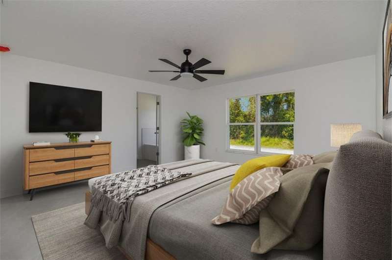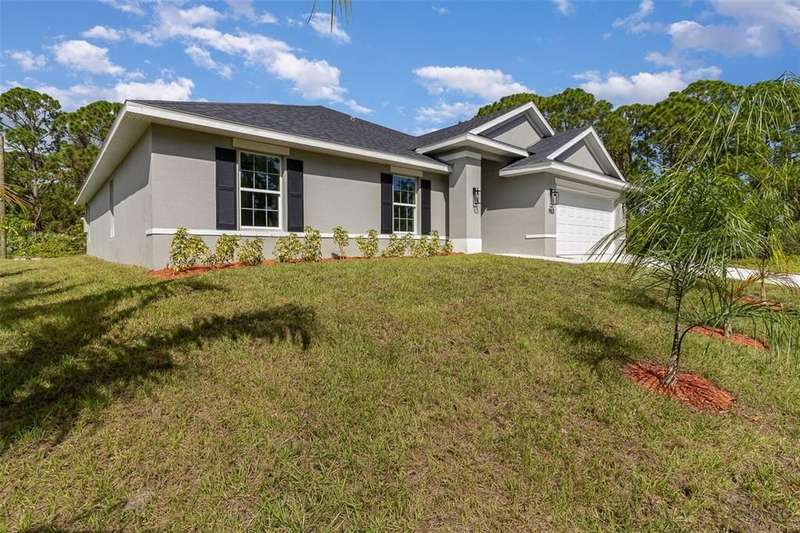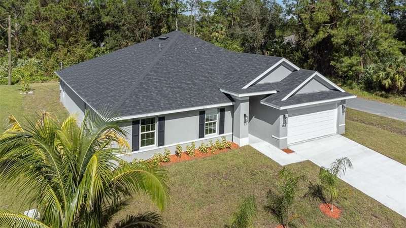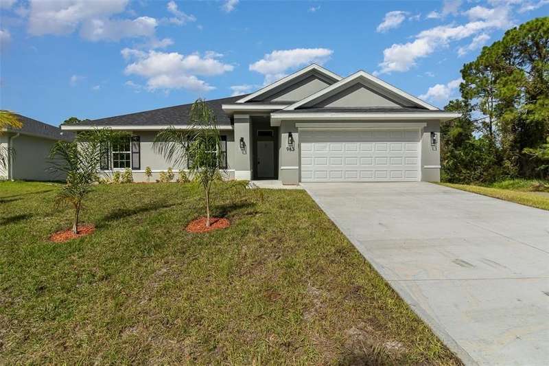 One or more photo(s) has been virtually staged. REDUCED PRICE NOW!! Experience modern Florida living in this brand-new 2024 construction home, perfectly located in a quiet and desirable area of Palm Bay, FL. Featuring 4 spacious bedrooms, 2 bathrooms, this property offers exceptional comfort, elegant design, and THE BEST PRICE BY SQUARE FOOT IN ALL PALM BAY - an unbeatable value for new construction. The open-concept layout seamlessly connects the living, dining, and kitchen areas, creating a bright and welcoming space ideal for family gatherings and entertaining. The high ceilings enhance natural light and volume, giving every room a sense of spaciousness and sophistication. The master suite serves as a true retreat, featuring a large, well-appointed, and naturally bright bathroom. The smart floor plan provides great privacy for owners while keeping the secondary bedrooms connected through a central hall - perfect for family living. A fourth bedroom adds flexibility, ideal for a home office, guest room, or creative space, a feature that has become increasingly valuable in today's lifestyle. Positioned on a corner lot and elevated about four feet above street level, this home stands out with its modern architecture, clean lines, and impressive curb appeal. In short, this residence represents a rare opportunity in Palm Bay - a modern, spacious, and well-designed new construction home at a truly exceptional value. Don't miss your chance to own one of the best-priced homes in the area - where quality, style, and investment potential come perfectly together.