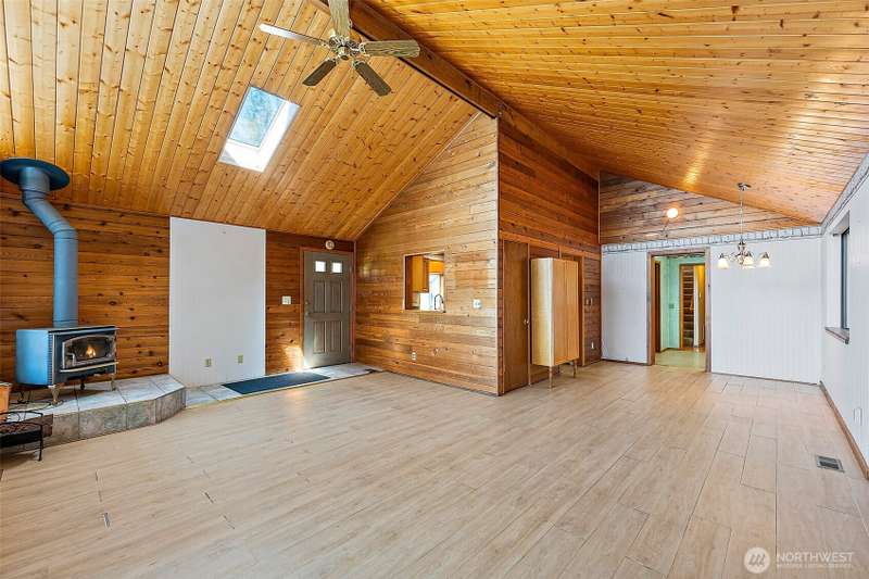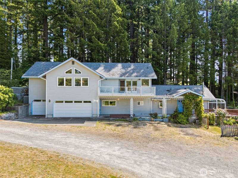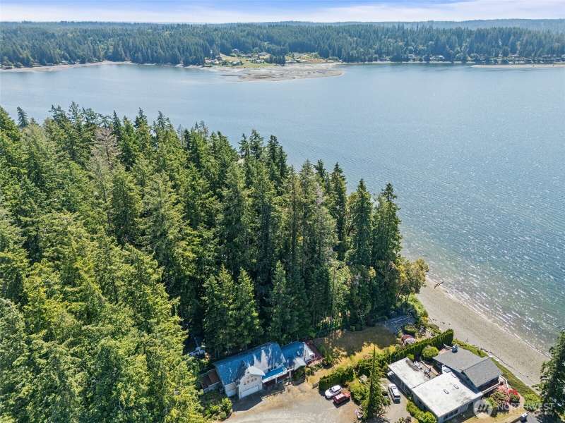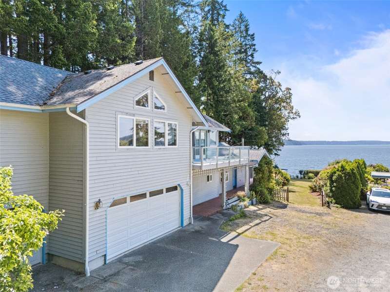 Huge waterfront home with amazing views of Case Inlet, Treasure, Stretch, Harstine Islands, and beyond! Enjoy life on the water on this acre+ lot with easy paved access to the beach to boat, fish, or harvest shellfish on your private tidelands. The main floor of the house consists of a living room with a wood stove and T&G cedar ceiling, a functional kitchen, a half bathroom, and a guest room with an ensuite bathroom. The expansive primary bedroom boasts a wet bar, pellet stove, walk-in closet, 5-piece bathroom, & sun deck. Also upstairs is a bedroom, a storage area, & a three-quarter bathroom. Both levels have washers & dryers. The comfortable heat pump, three-car garage, and elevator help complete this excellent value. Check it out today!