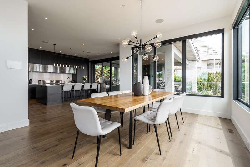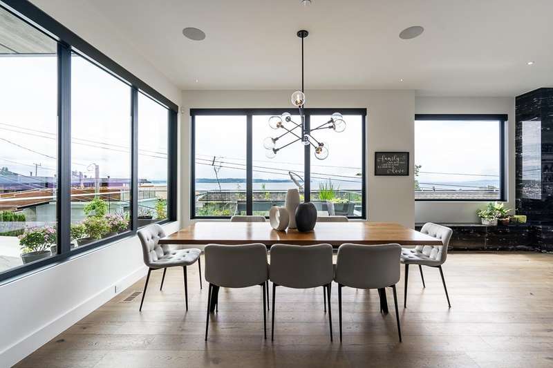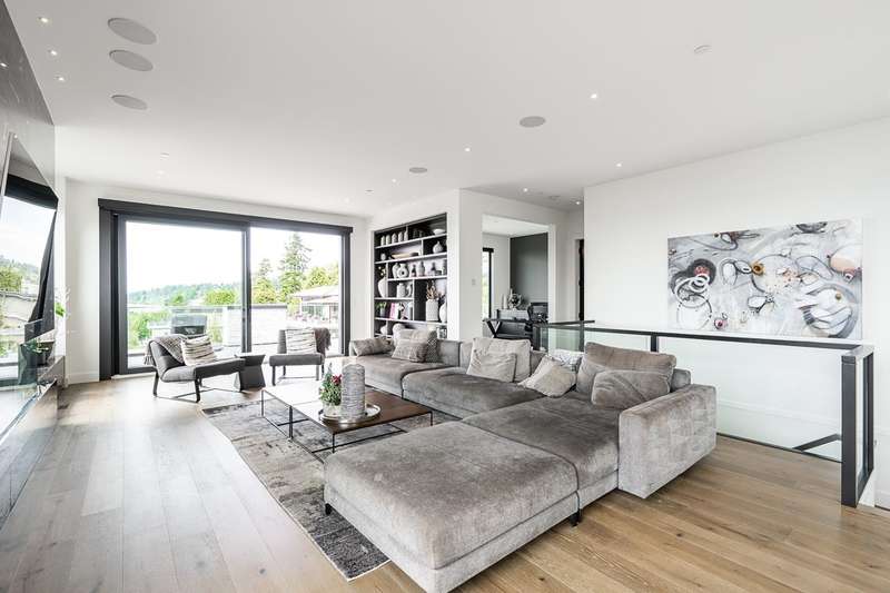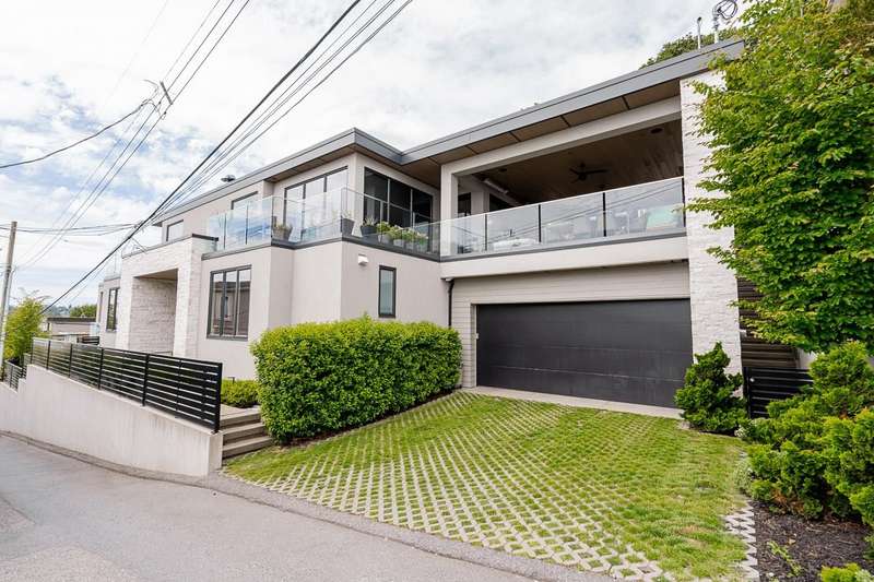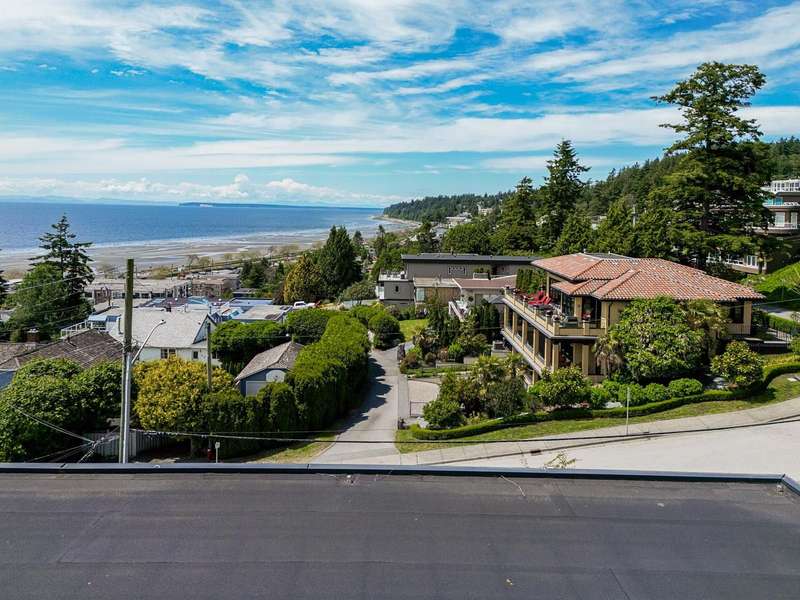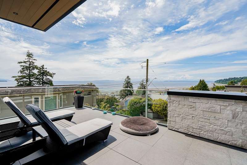 Custom contemporary luxury home built by M.E.C. Urban Developments with 180 degree ocean views and unparalleled quality. 5,603 sf of luxury interior living space with 5 bedrooms and 7 bathrooms, plus over 1000 sf of covered decks/patios and open sundecks. Featuring 10' ceilings, wok kitchen, media lounge, 8' DaVinci fireplace, finished elevator, control 4 automation, 4 car garage plus ample exterior parking for more cars. Expansive ocean views from the open and covered decks and multiple spaces for entertaining and relaxing. Finishes by Done to the Nines design team include carefully selected hardwood, tile, stone and stucco details. Private legal 1 bed/1 bath basement/nanny suite perfect long term rental or air b & b. Walk to the beach, restaurants and all that White Rock has to offer.