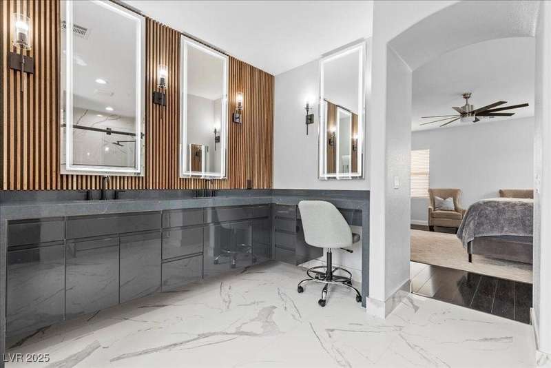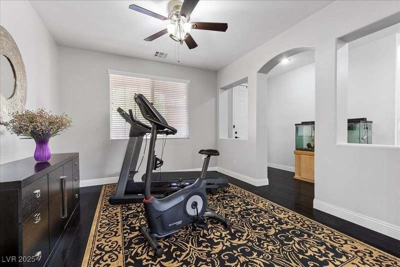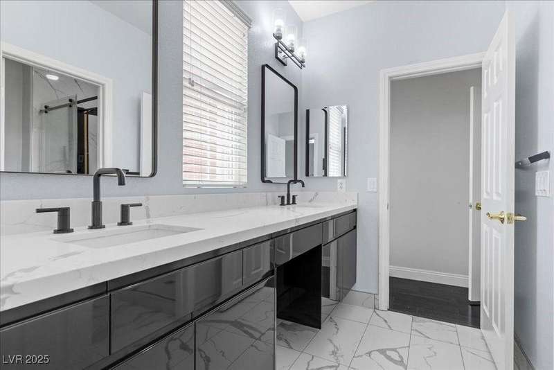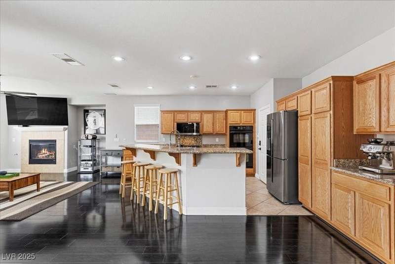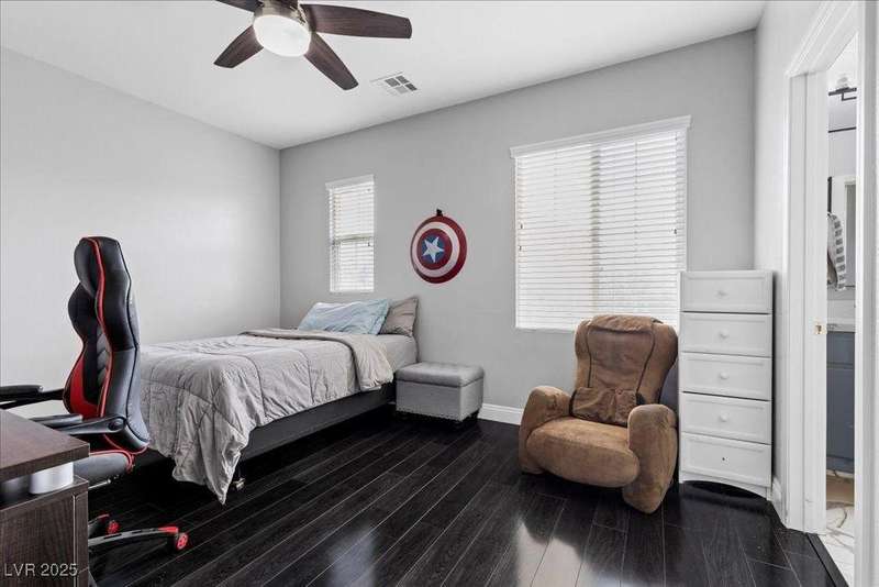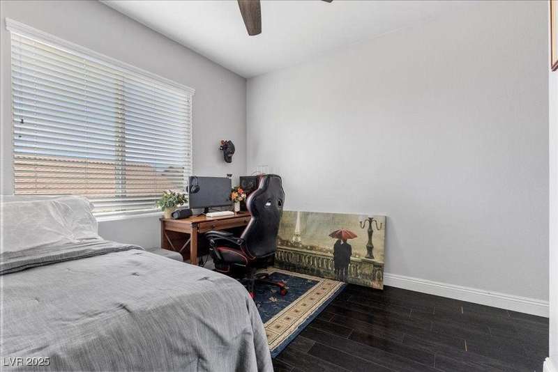 Welcome to this beautiful two-story home in the Yellowstone community of Southwest Las Vegas! The heart of the home features a bright and functional kitchen with granite countertops. There is an oversized island overlooking the family room and the dining space, perfect for entertaining or relaxing evenings in. The 9 ceilings throughout the home compliment the open floor plan. This home is well designed with a convenient downstairs bedroom and full bathroom, ideal for guests or multi-generational living. Upstairs, has a generous loft area perfect for a second living space, game room, or home office. The oversized primary suite offers comfort and privacy, while all bathrooms throughout the home have been beautifully updated with stylish finishes. The backyard is complete with a covered patio and artificial grass great for gatherings or just relaxing with family. Located in the Yellowstone community, residents enjoy access to a clubhouse, fitness center, and community amenities.