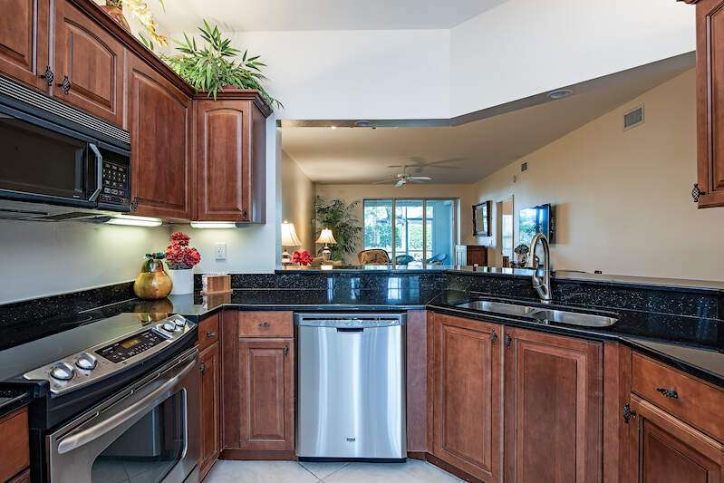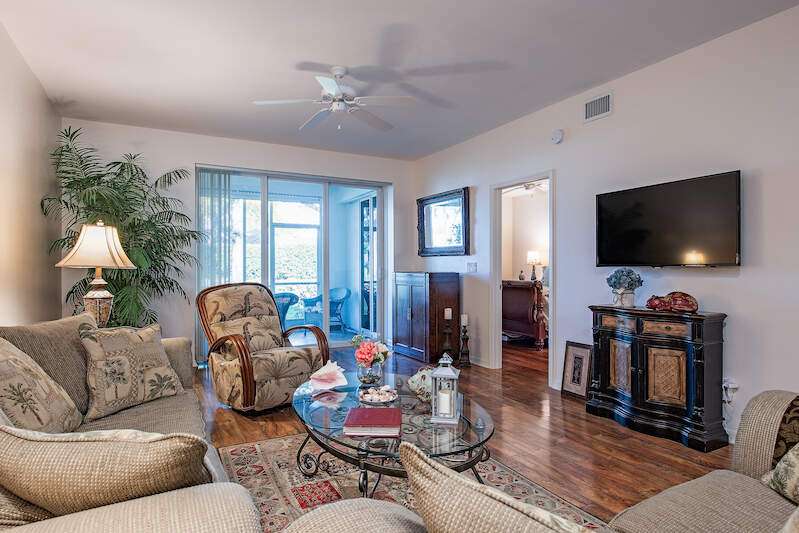 Newly painted first-floor unit with tasteful updating, including kitchen cabinetry and appliances. Both bathrooms have also been freshened. In addition, wood flooring highlights the living area. The screened lanai offers a tranquil landscape and water view. This is the perfect entry to Naples' premier luxury community, with private beach, tennis, fitness center and beachfront dining. In addition, Pelican Bay offers its residents a myriad of community activities and its location is adjacent to luxury shopping and one of Florida's top performing arts centers. Experience resort-style living in the heart of Naples.