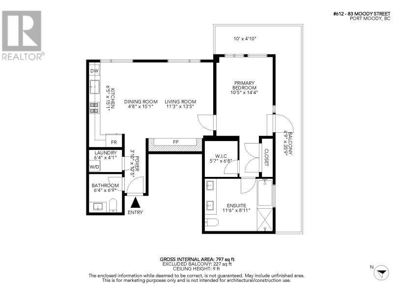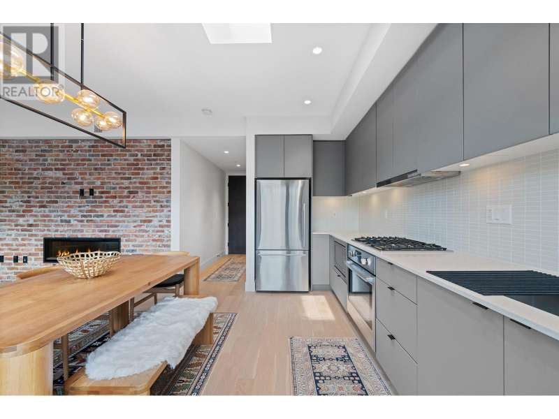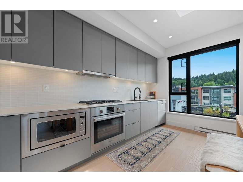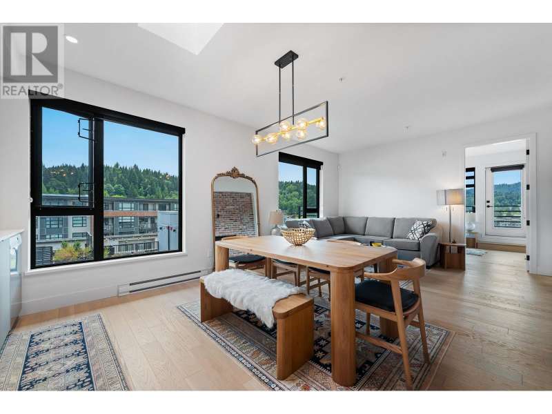 Breathtaking Water + Mountain Views from this expansive 1 bedroom Penthouse. Sweeping vistas of the mountains + Burrard Inlet from every angle. Bathed in natural light, the thoughtfully designed interior showcases Aragon´s signature brick feature wall with a built-in fireplace, creating a warm and stylish focal point. Modern cabinetry, elegant stone countertops + engineered hardwood flooring elevate the living space. South, West, + North exposures from generous 227 square ft wraparound balcony, perfect for soaking in the dramatic coastal scenery. Located just a 2-minute walk from Moody Centre SkyTrain Station + Rocky Point Park, this home has an unbeatable location. One electric vehicle parking stall + 1 storage locker. Reach out for your private appointment! (id:58403)