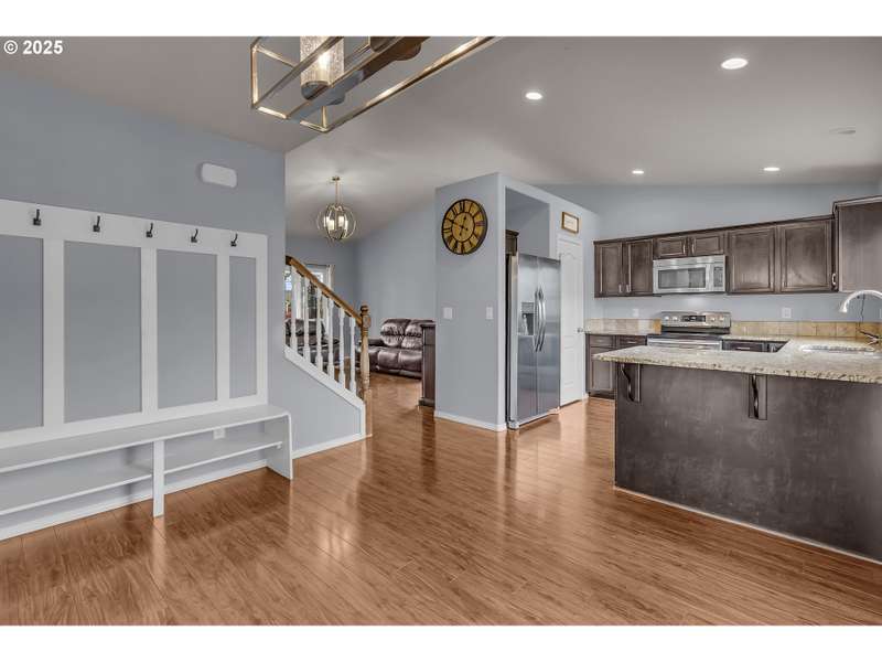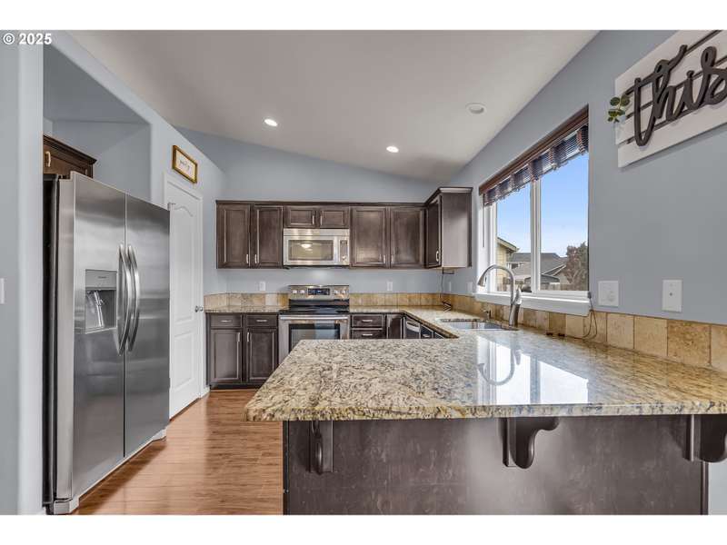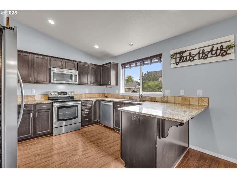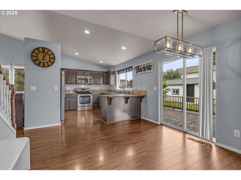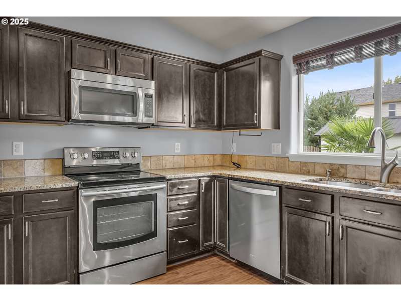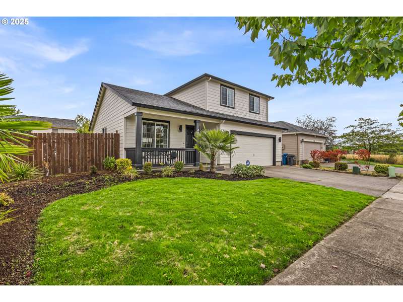 Don’t miss this well-maintained home featuring a sought-after layout with 4 bedrooms and 3 full bathrooms including a main level bedroom and full bath, perfect for guests or multi-generational living. The main floor offers a large living room area with durable laminate flooring, a spacious kitchen with granite slab countertops and dining area.Upstairs you have 2 spacious guest bedrooms or room for an office, large guest full bath, and massive primary bedroom with plenty of closet space, shower and his and her sink. Enjoy the beautifully landscaped front yard with sprinklers, and a large fully fenced backyard also with sprinklers ideal for entertaining or play. Home is in the heart of woodburn; conveniently located close to woodburn outlets, schools, restaurants, shopping, and quick access to I-5. No HOA and no CC&Rs!