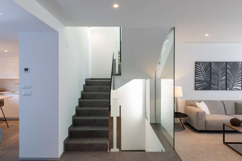 The interior of the villas is designed with a focus on modernity and functionality. On the ground floor, you'll find a spacious living area, an open-plan kitchen equipped with modern appliances, and a dining area. A ground-floor bathroom adds convenience and practicality to the layout.