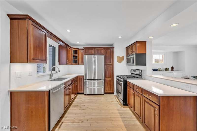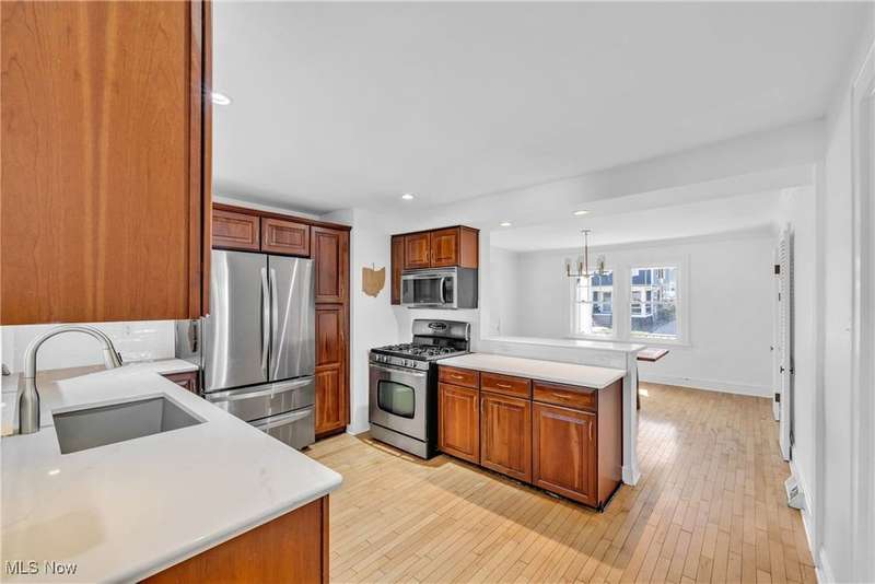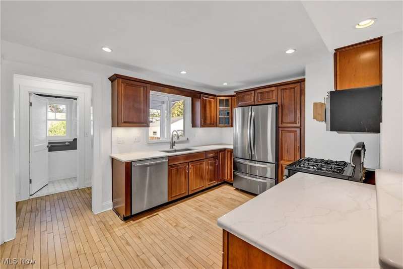 Welcome to this gorgeous 1920 home situated on one of Lakewood's most coveted streets. Bursting with charm, the inviting front porch welcomes you into the sun-filled living room with gleaming hardwood floors and fresh, neutral paint. The large dining room with charming built-ins opens to the absolutely stunning kitchen, perfect for all of your entertaining needs. New quartz countertops and a sleek subway tile backsplash brighten the beautiful, timeless cabinets, accompanied by stainless steel appliances. Style meets function in the conveniently located mudroom, with a custom bench and storage for shoes, making it a perfect "drop zone" for your busy lifestyle. A rarity in Lakewood, the first floor den offers flexibility as an office, playroom or guest space, with built in bookshelves for additional storage. A neat and neutral half bath completes this level. Upstairs, 3 generously sized bedrooms with ample closet space are serviced by a large full bathroom. A custom wardrobe in the primary bedroom is the perfect solution for optimizing closet space. The finished basement offers additional room for entertaining, an oversized cedar closet, and a full bathroom with laundry. Retreat to the fenced in backyard for relaxation and lake breezes. This home is the perfect blend of 1920 character and today's amenities, including a newer furnace and air conditioning! With proximity to the iconic Solstice Steps at Lakewood Park, Lake Erie, schools, restaurants and shops, this home truly has it all! Move right in and enjoy!