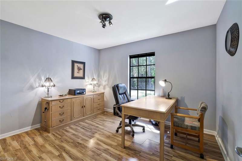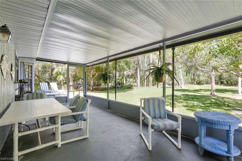 Well-maintained ranch-style home on 2.27 acres, just 10 minutes east of Collier Blvd (951). This home features high ceilings, skylight windows, tile & laminate (LVP) flooring, and an open floor plan. The kitchen offers quartz countertops, a gas stove, and an R/O water system. Enjoy cozy evenings by the indoor gas fireplace or relax outdoors on the large screened-in patio or front porch. Additional features include an outdoor shower, a blacktopped driveway, leafguard on the gutters, and underground utilities. Surrounded by nature, this property provides a peaceful setting with plenty of space and privacy. Agents, please download list of features from Supplements and share with your clients. It has been recently confirmed with NFIP that this property is in an X500 zone, meaning that the buyer may not be required by their lender to carry flood insurance.