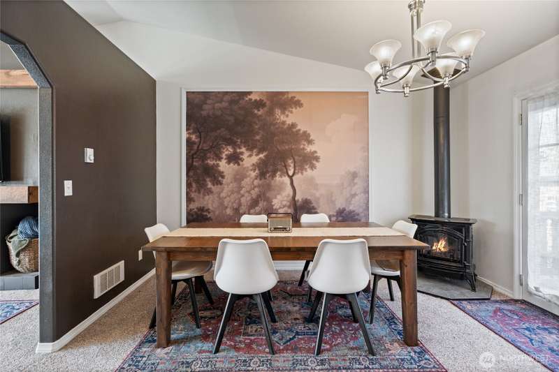 Take a deep breath—you’re home. This Eatonville beauty checks every box with 3 bedrooms, 2.5 baths, and a layout designed for comfort and style. Fresh paint, new flooring, and a newer roof create a polished, move-in-ready feel. Unwind by the cozy gas or pellet fireplace, or sip your favorite drink on the primary suite’s upper deck while taking in stunning Mt. Rainier views. The spacious two-tier deck is perfect for entertaining or peaceful mornings surrounded by nature, with French doors on both levels inviting natural light throughout. The fully fenced yard offers mature landscaping, raised garden beds, outbuildings, and covered parking—an irresistible blend of charm, function, and Northwest living at its best.
