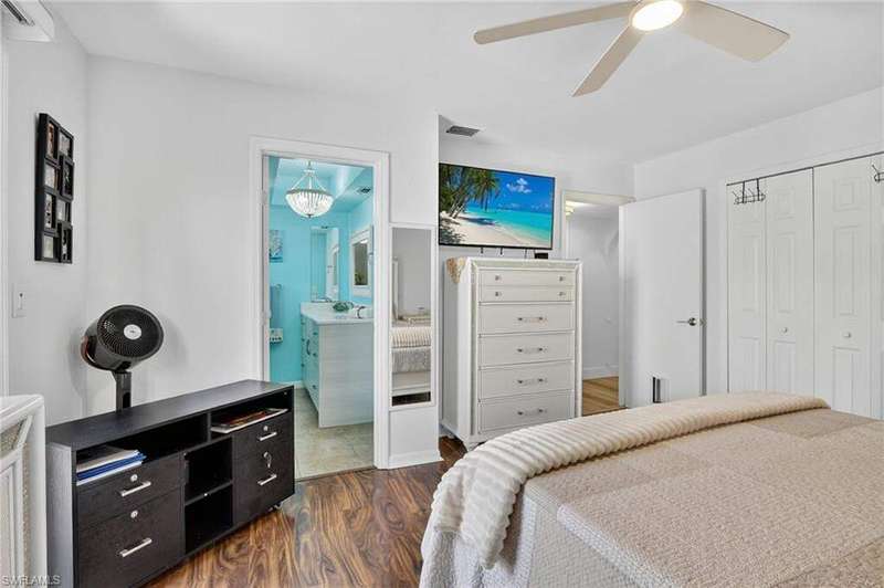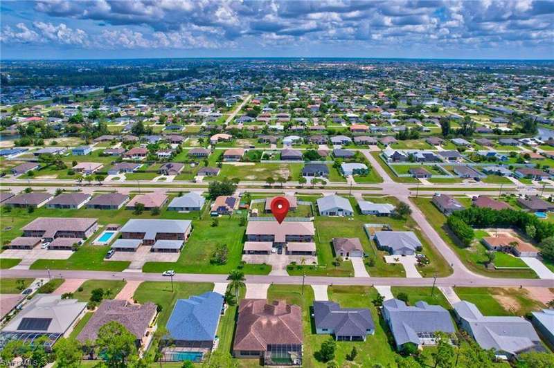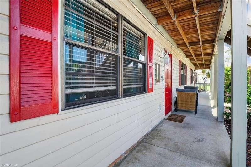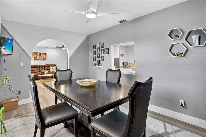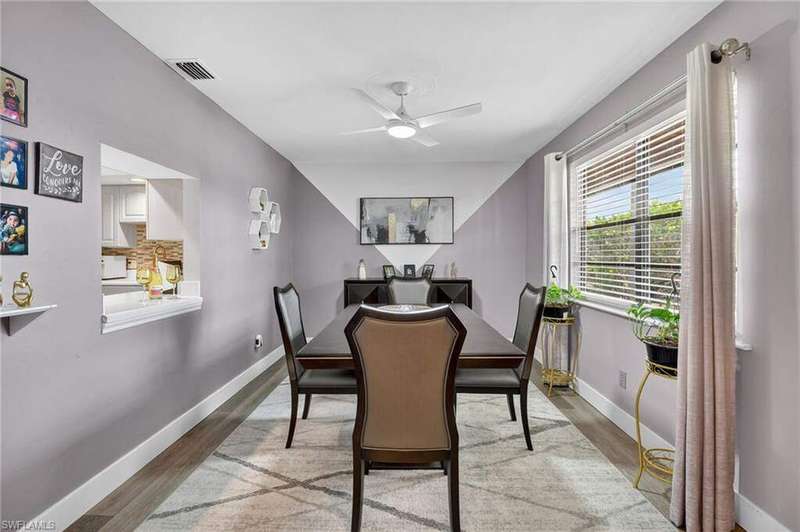 Chic & Stylish First Floor Condo in the Heart of Cape Coral. Welcome to this beautifully updated 2-bedroom, 2-bath home, ideally located near restaurants, shopping, schools, hospitals, Cape Harbour and Beaches. No Flooding--Flood Zone X--High & Dry. This first floor residence offers comfort and convenience, featuring spacious, freshly painted bedrooms and designer touches throughout. Recent upgrades include: New luxury waterproof flooring, new stove, new dishwasher, new washer/dryer, new water heater and newer A/C and plumbing (2022). The kitchen is equipped with stainless steel appliances, oscillating ceiling fan, quarts countertops and a pass through space that opens to a flexible dining area--perfect for entertaining or easily converted into a cozy den or office space. The bathrooms are unique with their elegant chandeliers, solid wood cabinets, soft close technology and quarts countertops. Modern ceiling fans or distinctive lighting elevate each room, adding a touch of sophistication. Imagine movie nights with family or friends in the large living room. The back patio is an ideal spot for your morning coffee or evening gatherings. Just steps away, the community POOL invites you to relax and unwind in a serene setting. Golf to your hearts content at the nearby, public Palmetto Pines Country Club. Boating enthusiasts can rent a space for your boat at one of the harbors or consider joining the Freedom Boat Club. Don't miss the opportunity to make this refined condo your own.--schedule a private showing today before it is gone! Veteran friendly.