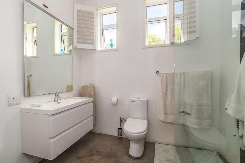 Industrial concrete flooring inlay in kitchen and bathrooms