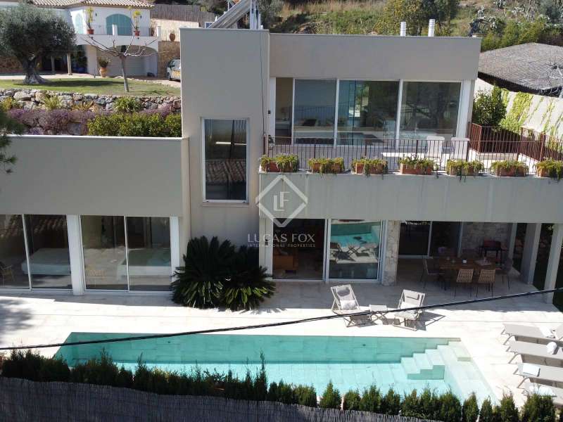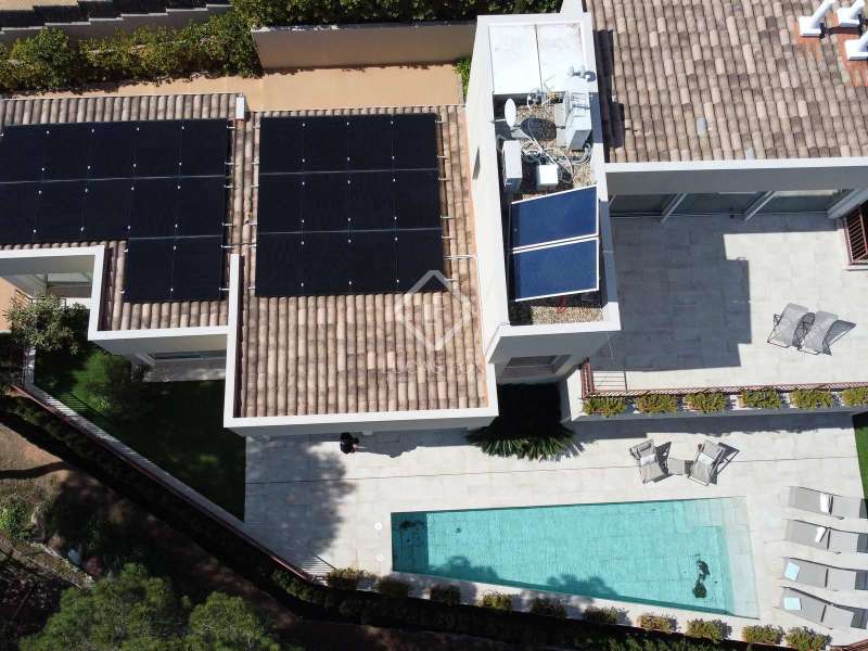 This fantastic new house is only 3 minutes from S'Agaró beach and all its services. The property is ready to move into and stands out for its impressive sea views and abundant natural light that floods in through the large windows. Wooden furniture with light and earthy tones has been selected to accentuate the Mediterranean style whilst colourful details provide a modern contrast. The house has been awarded an A energy efficiency, so maximum sustainability is guaranteed. The property is distributed across 2 floors: Access to the property is on the ground floor which is divided into the day and the night area, separated by the staircase. This floor offers a living-dining room with a kitchen: a rectangular, open-plan space facing the sea which opens onto the terrace and the swimming pool. The 3 bedrooms also have access to the garden, and one has a private bathroom. A separate bathroom completes this level. The minimalistic bathrooms feature a designer bathtub and benefit from plenty of natural light. The first floor is reserved for the master bedroom, an excellent space with private bathroom, dressing room and access to a large terrace. The excellent exterior space offers a covered terrace, perfect for al fresco dining, and a beautiful rectangular pool that serves as a perfect link between the house and the sea, to cool off during the hot months. The property boasts marble floors and is equipped with underfloor heating (with cooling option) and double glazed windows to ensure comfort throughout the year. In addition, it has an alarm system for total peace of mind. Contact us to visit this magnificent house, ready to move into, by the sea.