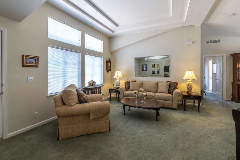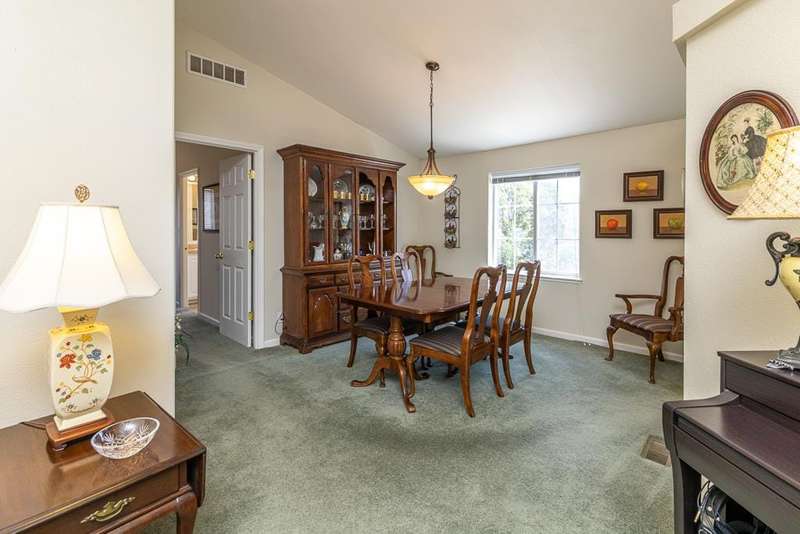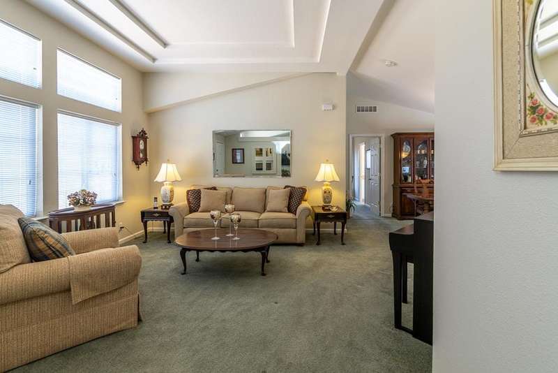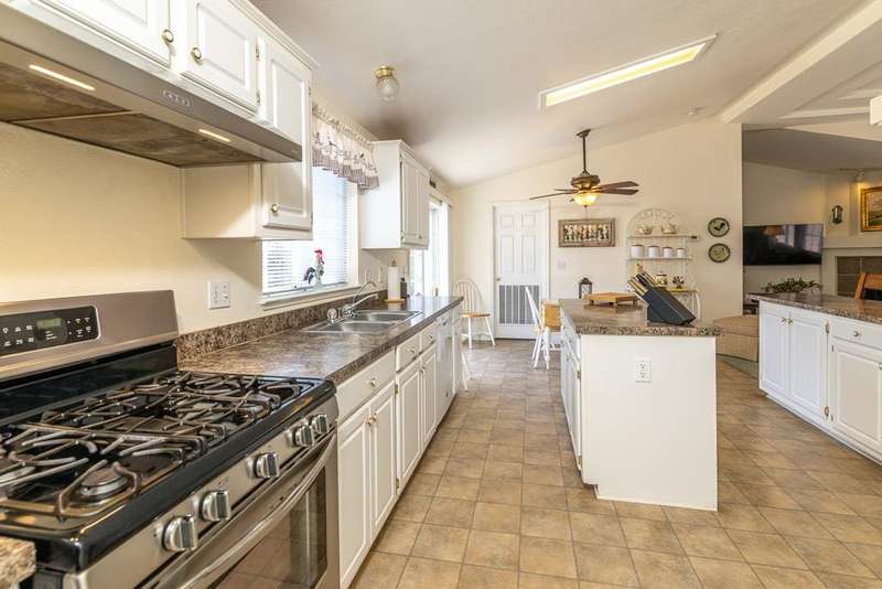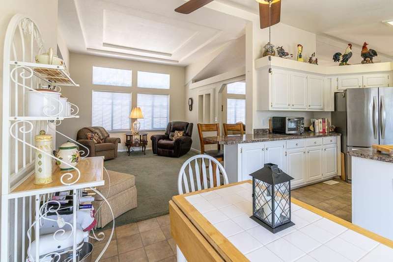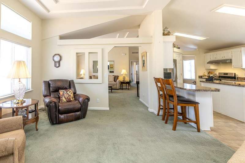 Beautiful Silvercrest Home, on 3 usable acres! Welcome to this gorgeous one-owner, turnkey manufactured home on permanent foundation, offering 1,738 sq. ft. of comfortable living space, with a thoughtful split floor plan! Built in 2003, it has a backyard mountain view, and privacy you'll love. Step inside to discover vaulted ceilings, and abundant natural light throughout. Enjoy the cozy fireplace in the Family room, and a spacious Living room, plus a well laid out kitchen, featuring a dinette area, dining bar, and a gas cook top, and a nice pantry, as well as a formal dining area. The primary suite is privately situated on one side of the home and features a soaking tub to relax in, and a walk in shower. Two guest bedrooms, and full bath are on the opposite side - perfect for family or guests. Recent updates include: New exterior paint, HVAC system replaced 2.5 years ago, 2 year roof certification, Solar system PAID IN FULL at close. Outside enjoy the large patio, a three car garage, and plenty of open space for your dreams, animals, gardens, or just relaxing under the wide open sky! There is a large swimming pool, gym, BBQ, play ground, and Clubhouse included. Within minutes to 3 large Lakes to fish, water ski & jet ski, easy access for commuter.