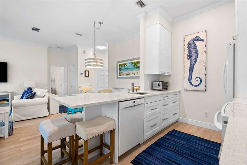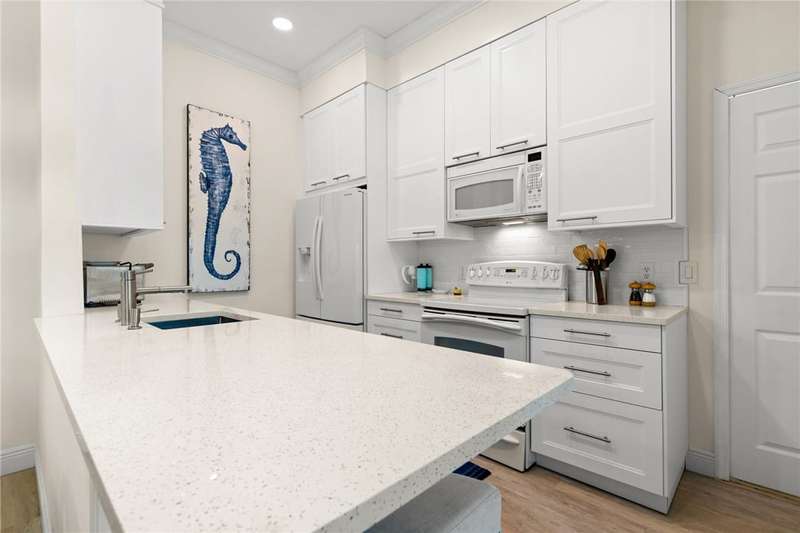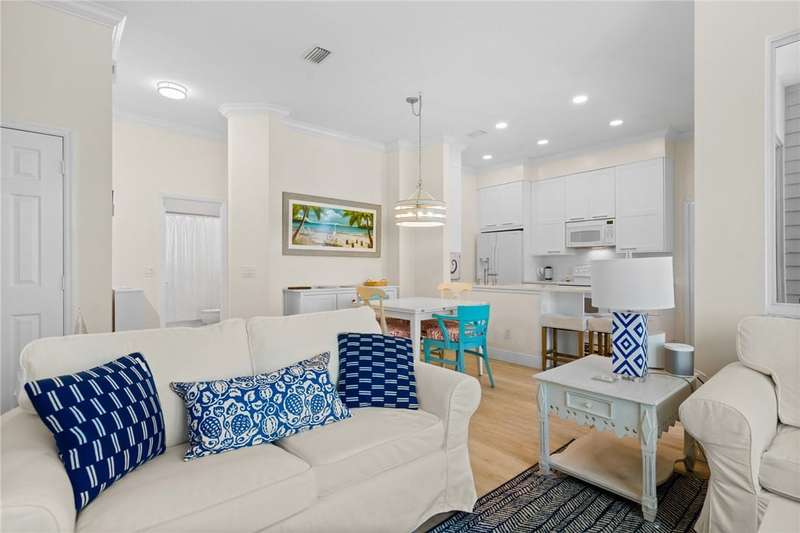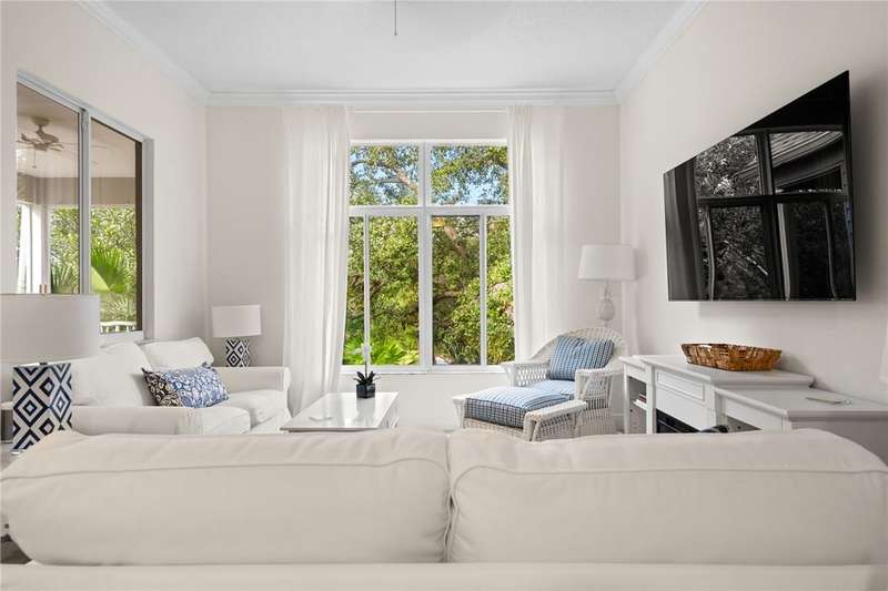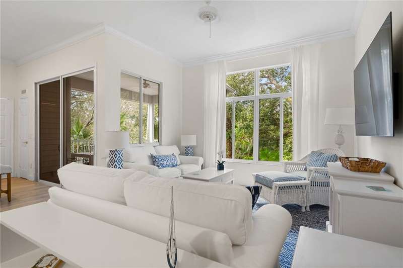 Beautifully renovated and appointed for comfort. Large south facing screened porch with abundant natural light. Open views from extra large windows give this Villa an open feeling. Tenant is responsible for Sea Oaks membership of $25.68/day. Sizes are approx/subject to error. Property and contents represented in photo subject to change.
