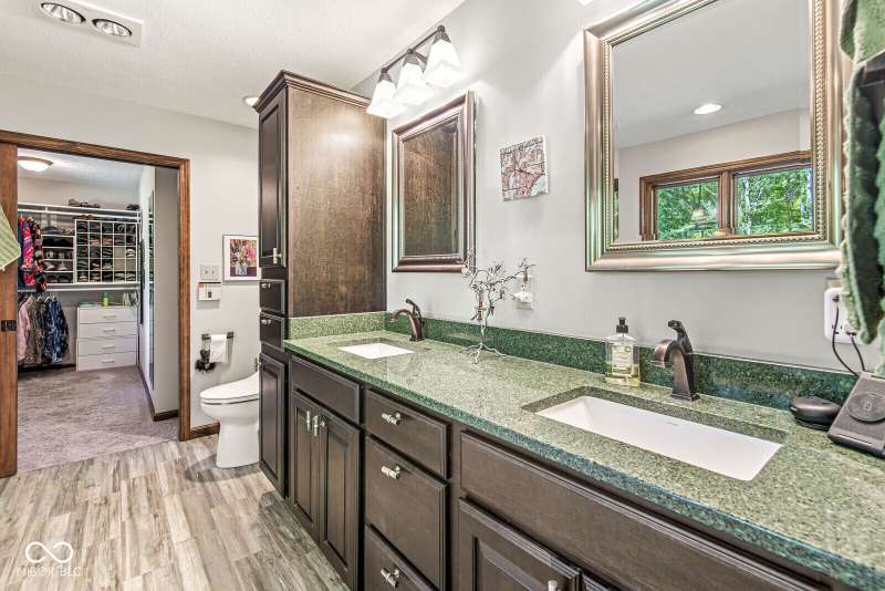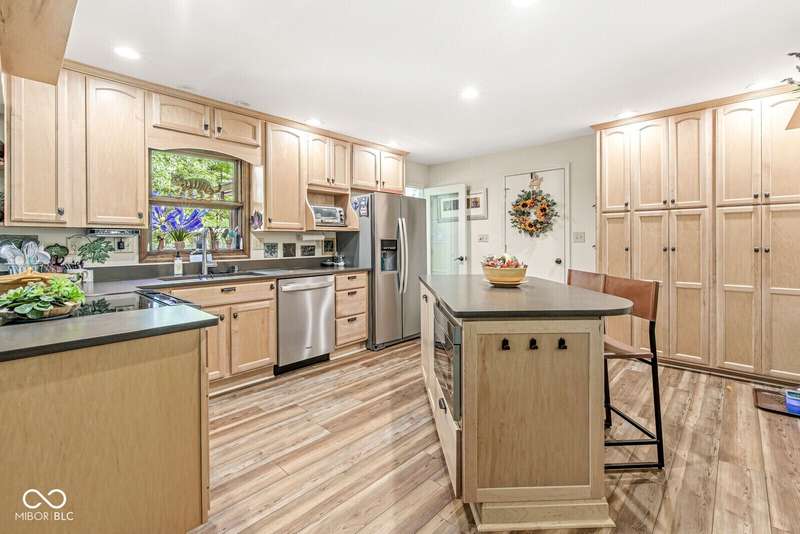 Looking for perfection? You found it! Sprawling brick ranch sitting on .65 acres in the heart of Fishers yet tucked away on a wooded, park-like lot located on a private cul de sac! This stunning 3 bed 2 full bath custom built home exudes quality workmanship and finishes throughout. Plenty of room for all to gather in the 21x20 cozy great room with LVP flooring, gas starter full masonry fireplace, and vaulted ceiling with exposed beam. Great room is open to the completely remodeled kitchen with all new appliances (2021), LVP flooring, double pantry cabinets (be sure to note the coat closet tucked away at the end of the pantry, convenient as you exit the home thru the garage!). Island in the kitchen features pull out shelves that double as a coffee bar. Dining room features a full wall of custom cabinetry w/pull out lower shelves and is open to the den/office both with LVP. Luxurious primary suite features an owners coat closet & a walk in closet, sitting area, and an ensuite bath with double sinks, jetted tub, tile shower and built-in mirrored medicine cabinets. Laundry area has built in shelves and hamper, stacked, full size HE washer/dryer (included) and drying racks. Arguably the best room in the house is the east facing, temperature controlled sunroom with slate flooring and built in shelves...the perfect spot to watch the deer in the backyard! 21x22 wood deck that opens to a 13x13 cement patio offer more ways to enjoy this lovely, private backyard. As if this property needed MORE goodness...side load, heated/cooled 2.5 car garage offers built in shelves, cabinets, work bench and storage room. This home is truly a little slice of paradise and you must see it to appreciate it! Property taxes will be reduced significantly once homestead exemption is filed by new homeowner. Schedule your showing today before it is too late!