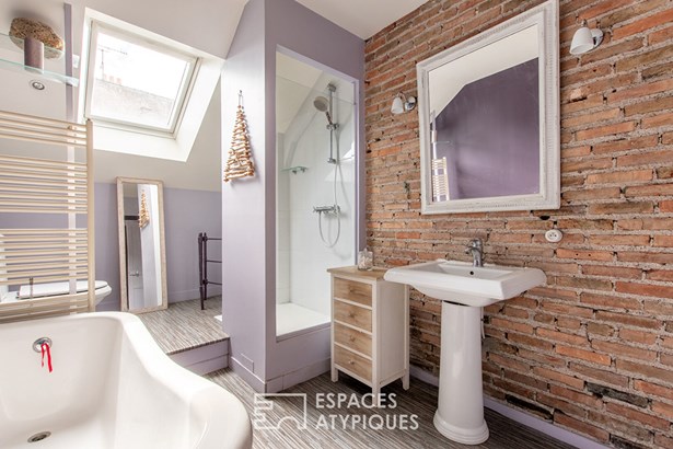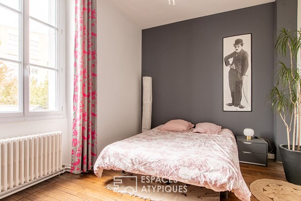This living room blends harmoniously with the modern extension, which houses a functional kitchen bathed in natural light, facing a magnificent wooded garden. This subtle blend of period features and contemporary lines gives this house a unique personality. This level also includes a single-story bedroom, ideal for accommodating guests or providing additional autonomy. A laundry room completes the ground floor spaces. On the first floor, the sleeping areas consist of four modular bedrooms, ideal for a family or remote working needs. A modern shower room and a toilet complete this level. The top floor is entirely dedicated to a master suite. It includes a spacious and bright bedroom, a separate dressing room, and a private bathroom, offering a true cocoon of serenity. This level also houses a multipurpose workshop, perfect for creative or professional activities.