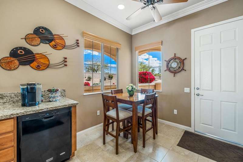 Booked Feb- April 2026 This is a 55+ community Fabulous Sun City Shadow Hills Home. Light & bright meticulously maintained Canterra model. 2 bedrooms, 2 baths, this floorpan offers 1257 sq ft of open living space.The greta room has 10 ft ceilings, crown molding, and large windows providing ample natural light and views. The kitchen features granite counters, some stainless steel appliances, quality wood cabinetry w/ pullouts for easy storage, and a breakfast nook. The master bedroom has views to the backyard and master bath step-in shower w/dual vanities and a large walk-in closet. The 2 car garage has epoxy floor and plenty of storage space. The covered patio is great for relaxing. There's also a extended cement patio and artificial grass.Sun City Shadow Hills is a 55+ gated community with 24-hour security guards offering a vast array of amenities including golf, dining, clubhouses, social activities, fitness centers, pools, sport courts, dog parks and so much more! Perfect vacation rental