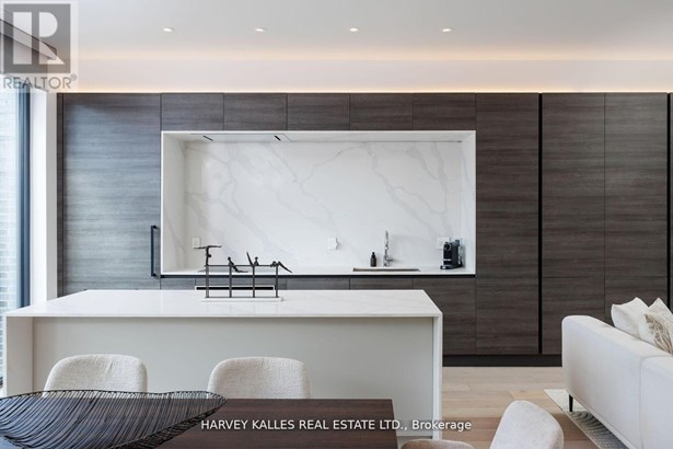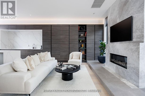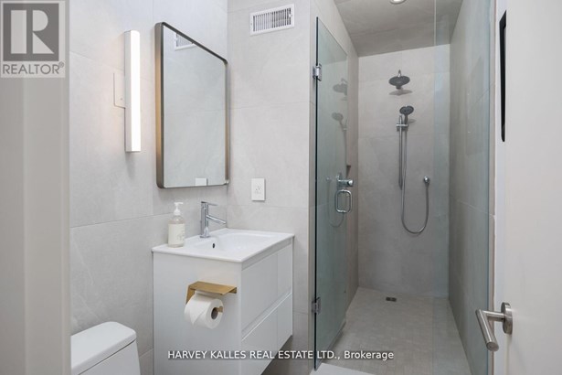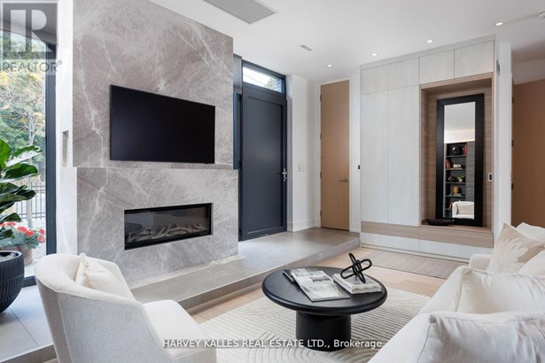 A masterfully reimagined residence that captures the essence of contemporary luxury. Designed for the discerning professional family, this home balances refined style with livability - a rare find in the one of the city's most coveted east-end enclaves. This exceptional 3+1 bedroom, 5 bath, custom home, blends architectural detail, sophisticated interiors and forward thinking engineering with an open-concept main level, 10 foot ceilings and almost 3000 square feet of living area. The home includes wide plank Maple hardwood floors, custom millwork and many upgrades that set a tone of quiet and contemporary luxury. Passive Home rated floor to ceiling windows and fully electric Hunter Douglas blinds accentuate sun-filled rooms. The living and dining areas are ideal for elegant entertaining, anchored by a Scavolini kitchen with an inviting quartz island that truly inspires culinary kings and queens - complete with ultra high end professional-grade appliances. Second level, private quarters offer a sanctuary for modern family life. The staircase, lined with a slatted white oak floor to ceiling feature wall winds into the open concept den and 2 abundantly appointed bedrooms with artful detailing and two individual full baths and laundry room. Rising to the 3rd floor's westward view of the city, the primary suite features 5 pcs ensuite, stone crafted soaker tub and Scavolini walk-in. Lower level integrates form and function with a stylish media lounge area, home office and exercise area. Employing a premium, performance based eco-friendly Passive Horne template, the home includes heated floors throughout. Roof top solar panels create an almost net zero energy efficient home. West facing urban backyard oasis for morning coffee and entertaining. Steps to Greenwood Park and Queen East shops, this is the ideal home for Up-sizers, Urban Professionals and the discerning buyer, who appreciates craftsmanship, community and modern convenience in an upscale, urban neighbourhood.