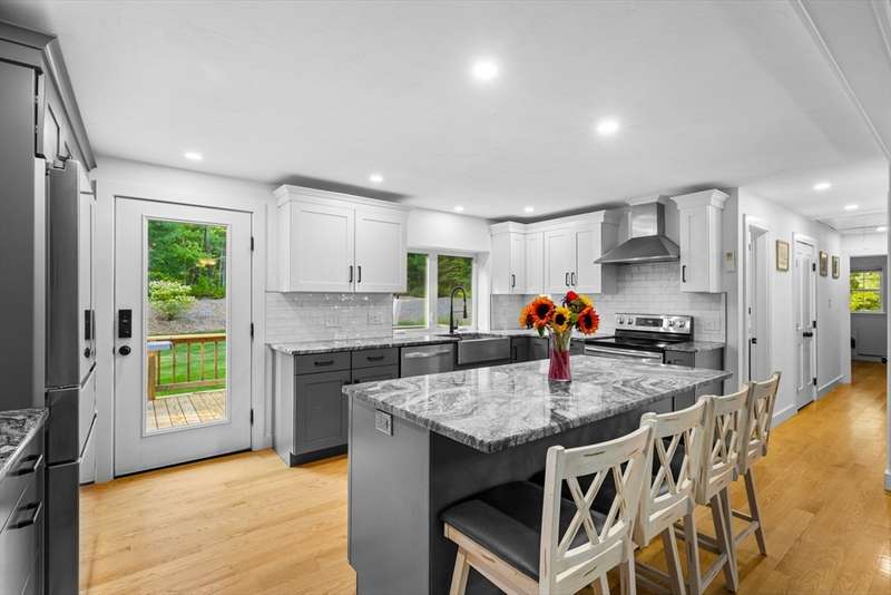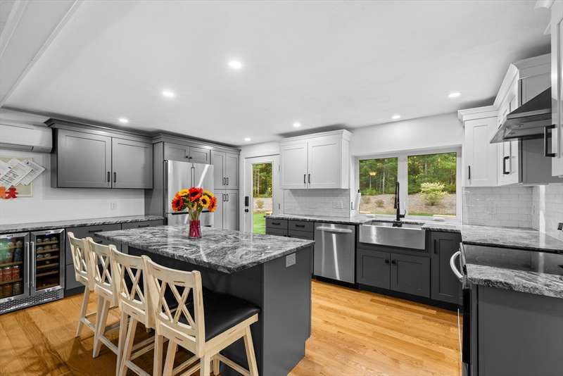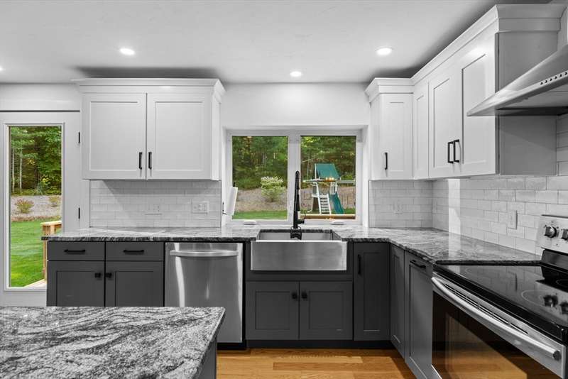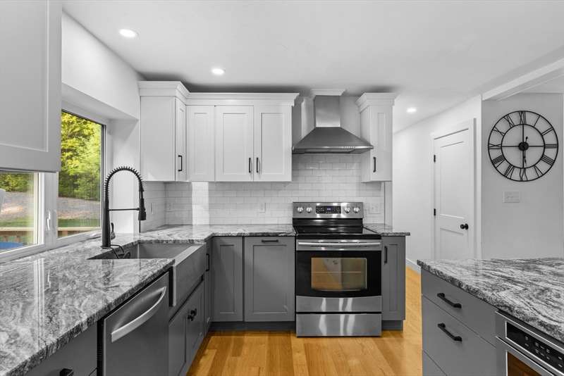 Bring your offer and be in for the Holidays. That's not a photoshopped lawn! Manicured landscaping & amazing curb appeal in this 3BR fully renovated raised ranch home with 1 car garage & partially finished basement. Redone from top to bottom. Amazing open concept kitchen & FR space ideal for everyday living. Custom cabinetry, granite counters, SS appliances (incl wine fridge station), tile backsplash, recessed lighting & farmers sink. Full view of the expansive back yard from the oversized kitchen window. Gleaming hardwood floors throughout the main floor. Fireplaced FR with hardwood stairs from the main entry. Updated and tiled bathrooms, incl the primary with custom tiled shower. All BRs have ceiling fans. Lower level has a lg finished game room area, a laundry/storage area and access to the 1 car garage. Parking for 20 cars, so you can have amazing get togethers & utilize the incredible lawn space. Solar panels & Tesla battery to offset your costs. Irrigation system w/ well.