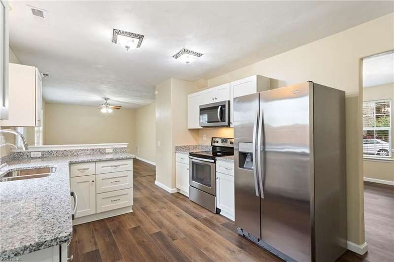 Welcome home to this beautifully updated home located in the sought-after Kellam School District. Thoughtfully refreshed throughout, it offers a warm and welcoming layout. The main level features brand new flooring (2025), an updated kitchen (2025) with granite countertops, and an open design that flows easily into the inviting living room. A separate dining area and additional den provide flexible spaces for work, play, or entertaining. Upstairs, you'll find three spacious bedrooms and a full bathroom, including a large primary suite with an ensuite bath, walk-in closet, soaking tub, and separate shower. The attached one-car garage includes a versatile flex room great for a home office or playroom. Outside, enjoy a nicely sized yard with a paved patio great for relaxing or hosting gatherings. Centrally located near shopping, dining, and beaches, this beauty offers comfort, convenience, and lasting value in a vibrant, close-knit Virginia Beach community you'll be proud to call home.