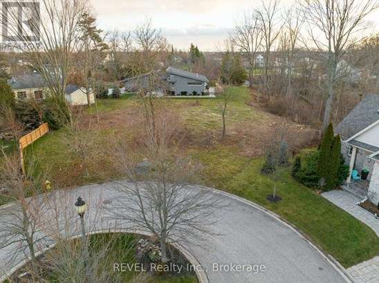 Spacious and clear building lot at the end of a quiet cul de sac. Offering a wooded ravine along one side! Walking distance to the Old Towne shops and restaurants. Important to note that actual street frontage of about 48 ft, quickly widening to about 77 at the beginning of building envelope - surveys available. Offers a proposed dwelling of approximately 2660 sq ft (or larger two-storey). Development charges to be the purchasers responsibility. Recently completed services of municipal water and sewer at the lot line. Not tied to any builder contract. A beautiful street in an idyllic town awaiting your dream home!