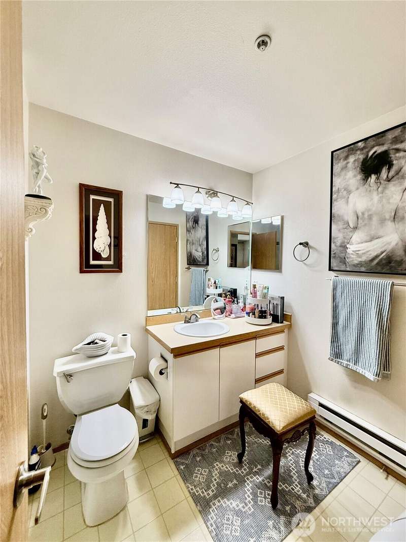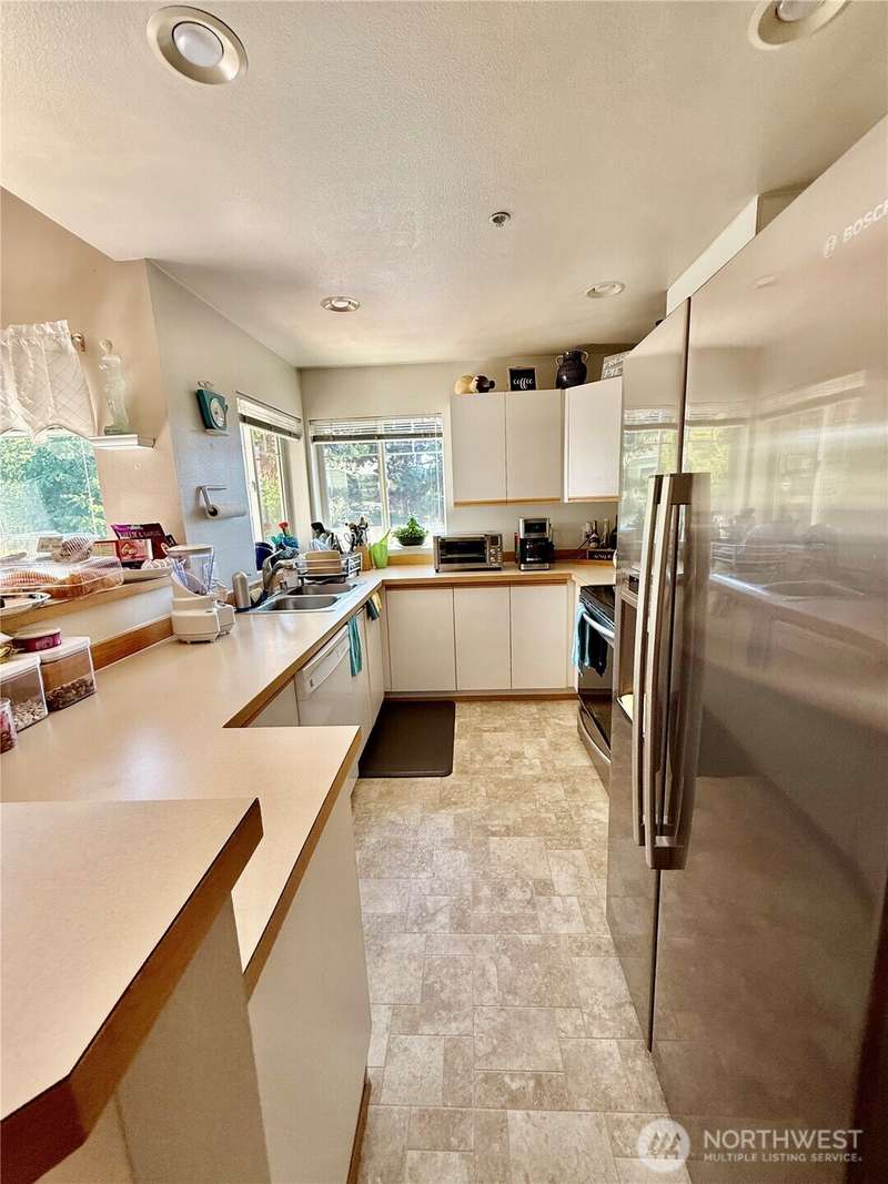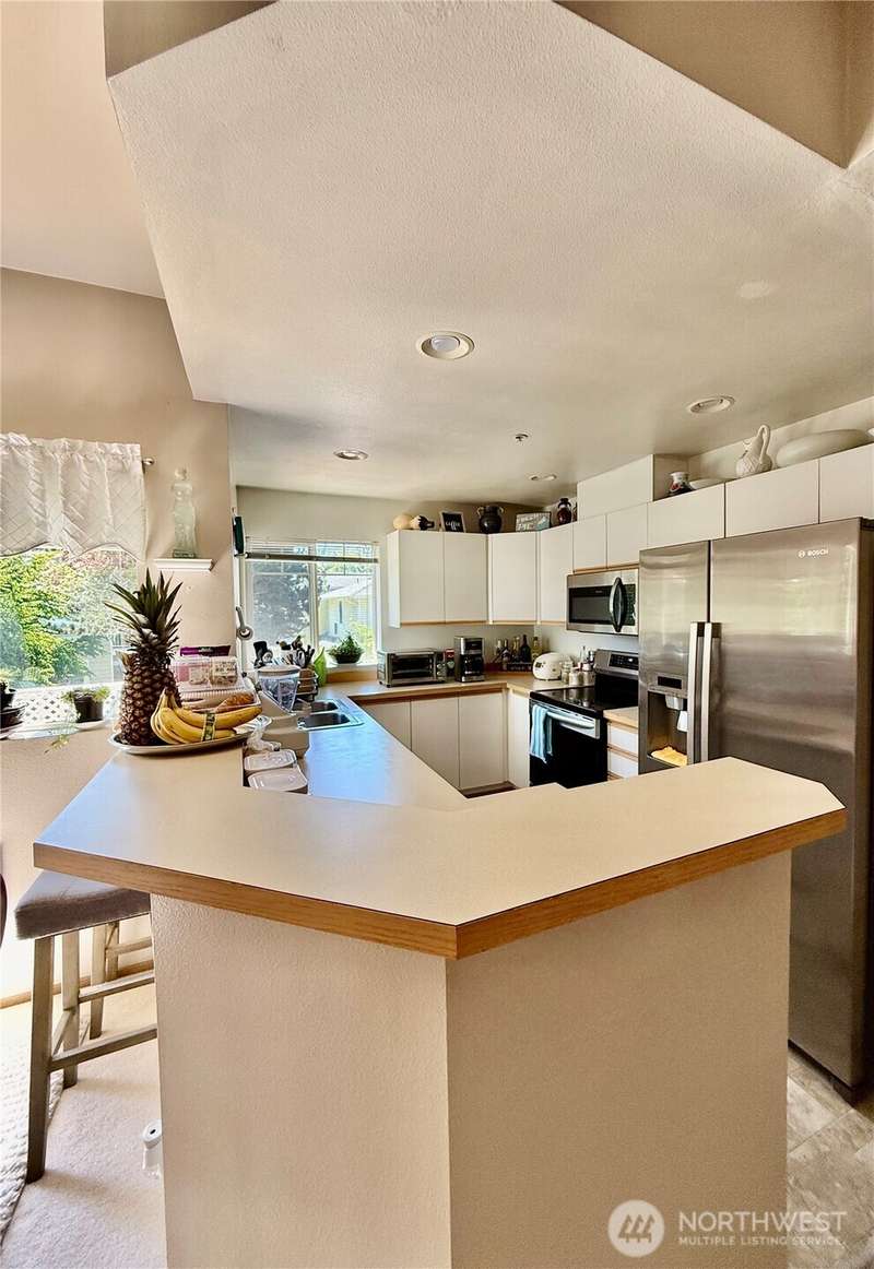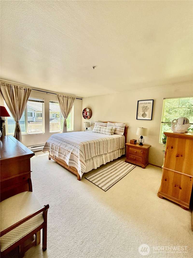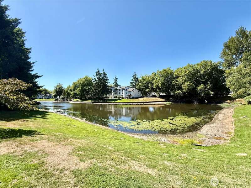 Welcome to The Lakes Community with front-facing windows and lots of natural light throughout! Charming walking trails & parks along tree-lined streets & beautiful water features. Kitchen with breakfast bar, 9' ceilings, and plenty of cabinet space! Spacious primary with walk-in closet. Jack and Jill bathroom with access door to the primary. Attached garage with entry to the condo has a storage cubby and shelving. Easy commuting with easy access to 167, I-5, 405, and the airport! Lakes with fountains, walking trails, and ample nearby guest parking. Clubhouse with hot tub, sauna, and workout room!