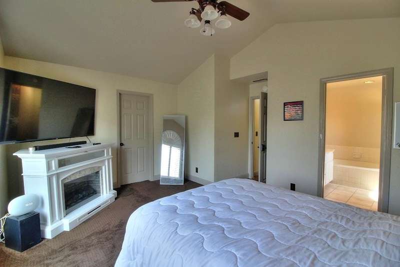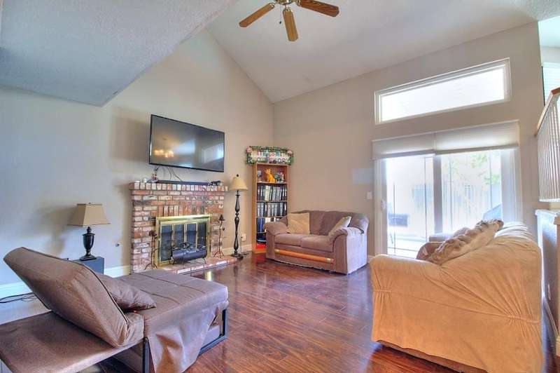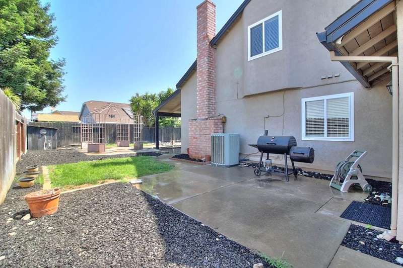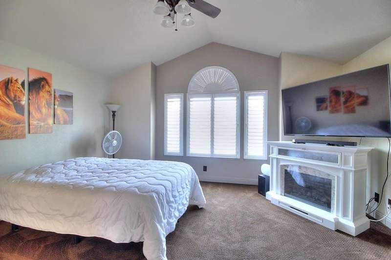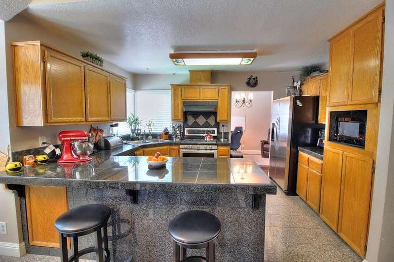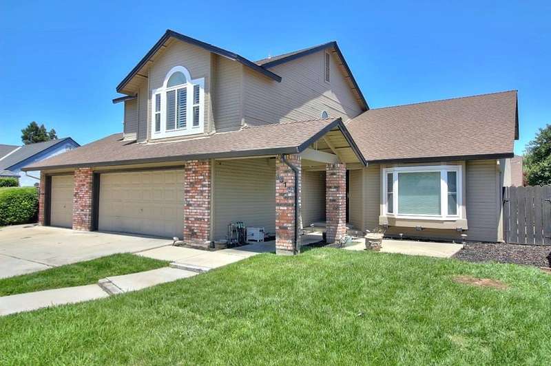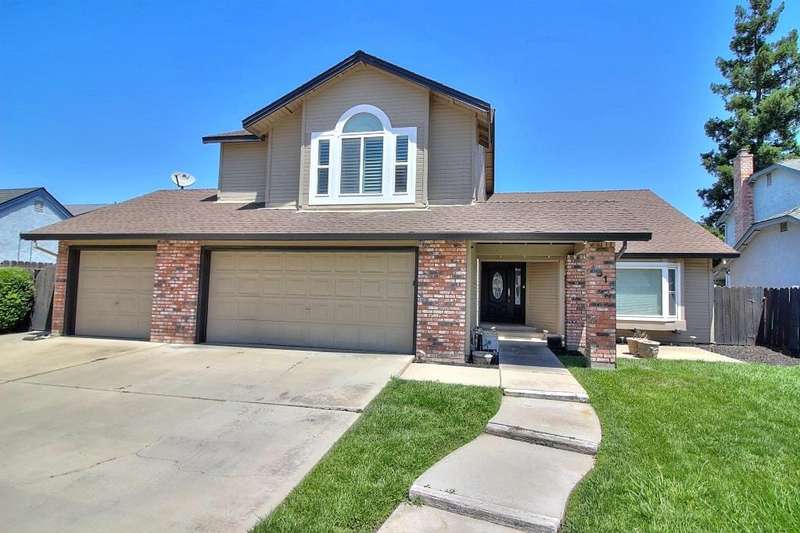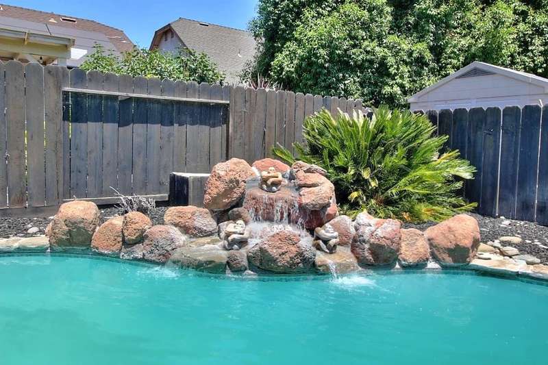 Now is your chance to own a home that truly has it all! From the moment you arrive, you'll be impressed by the expansive 3-car garage, possible RV access, and inviting covered entry. Inside, the layout is both functional and welcomingfeaturing a spacious family room that flows into a formal dining area and an open kitchen with sleek black granite counters, stainless steel appliances (oven is just one year old), a dining bar, and a cozy breakfast nook overlooking the backyard. Step down into the inviting living room with a charming brick fireplace and sliding glass doors leading to the covered patio. The downstairs also includes a full bedroom and bathroom with a walk-in tubperfect for guests or multi-generational livingas well as a laundry room for added convenience. Upstairs, you'll find two additional spacious bedrooms, a hall bathroom with a freshly painted vanity, and a generously sized primary suite with a walk-in closet, dual-sink vanity (also freshly painted with new fixtures), a soaking tub, and a separate shower. The backyard is your personal summer retreatfeaturing a gated pool with a soothing waterfall, a large grassy area, and a gazebo ideal for relaxing or entertaining.