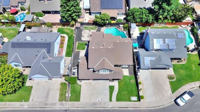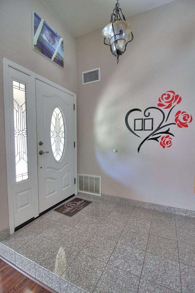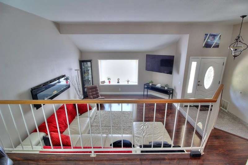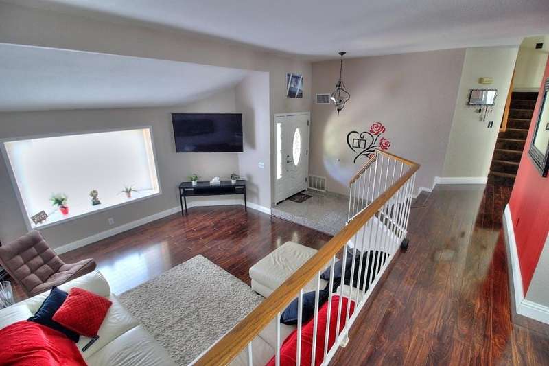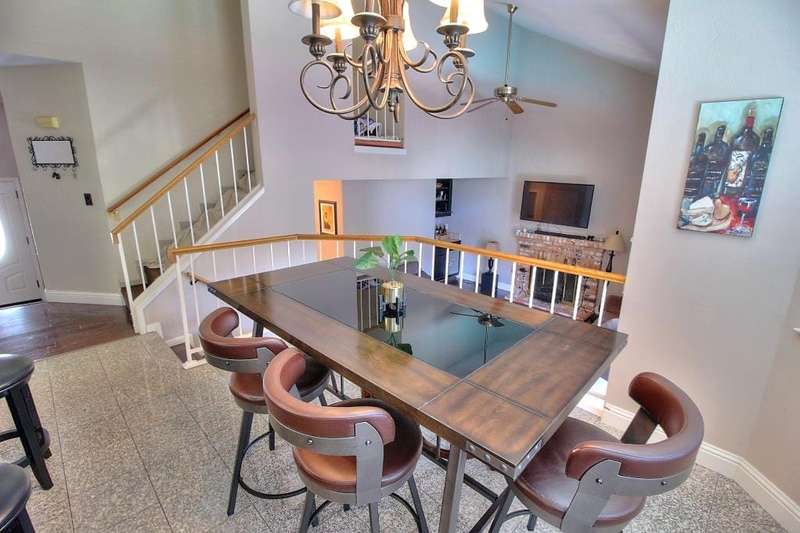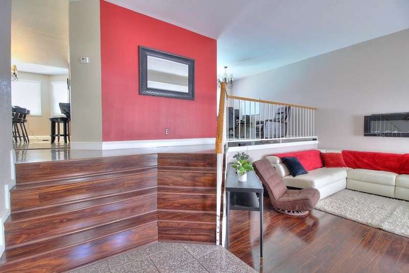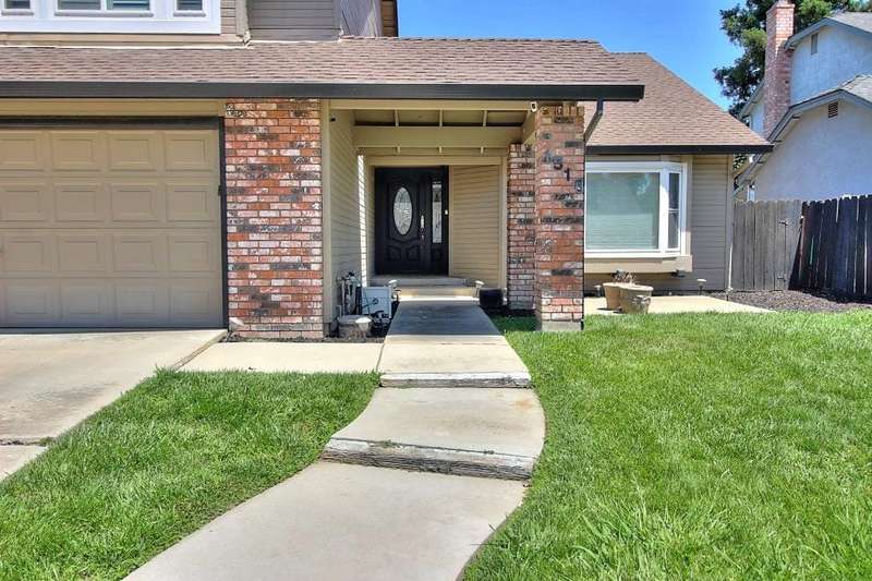 Now is your chance to own a home that truly has it all! From the moment you arrive, you'll be impressed by the expansive 3-car garage, possible RV access, and inviting covered entry. Inside, the layout is both functional and welcomingfeaturing a spacious family room that flows into a formal dining area and an open kitchen with sleek black granite counters, stainless steel appliances (oven is just one year old), a dining bar, and a cozy breakfast nook overlooking the backyard. Step down into the inviting living room with a charming brick fireplace and sliding glass doors leading to the covered patio. The downstairs also includes a full bedroom and bathroom with a walk-in tubperfect for guests or multi-generational livingas well as a laundry room for added convenience. Upstairs, you'll find two additional spacious bedrooms, a hall bathroom with a freshly painted vanity, and a generously sized primary suite with a walk-in closet, dual-sink vanity (also freshly painted with new fixtures), a soaking tub, and a separate shower. The backyard is your personal summer retreatfeaturing a gated pool with a soothing waterfall, a large grassy area, and a gazebo ideal for relaxing or entertaining.