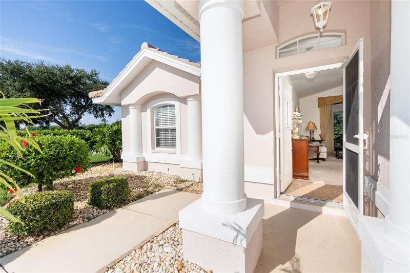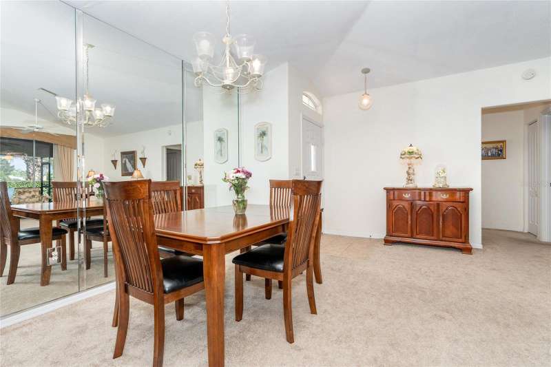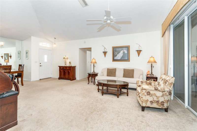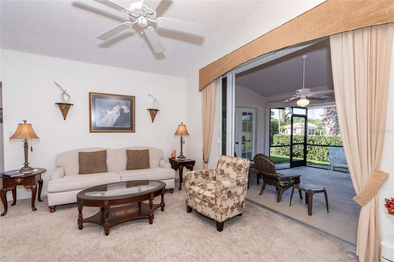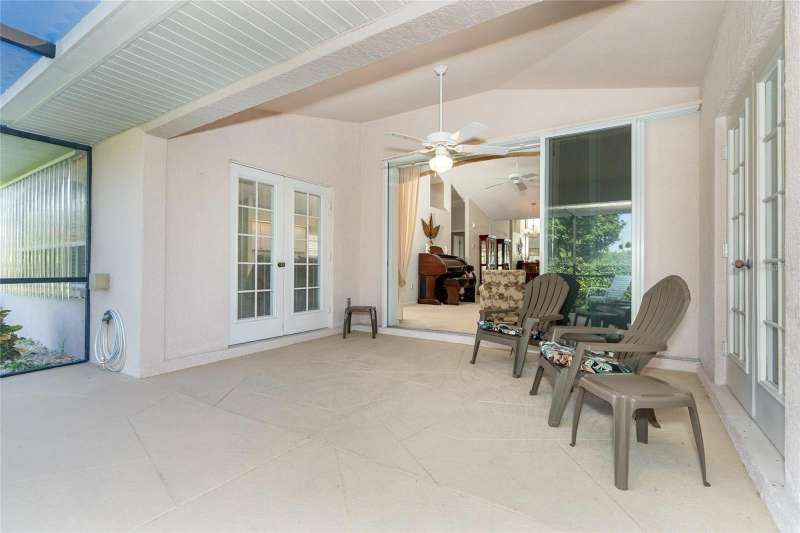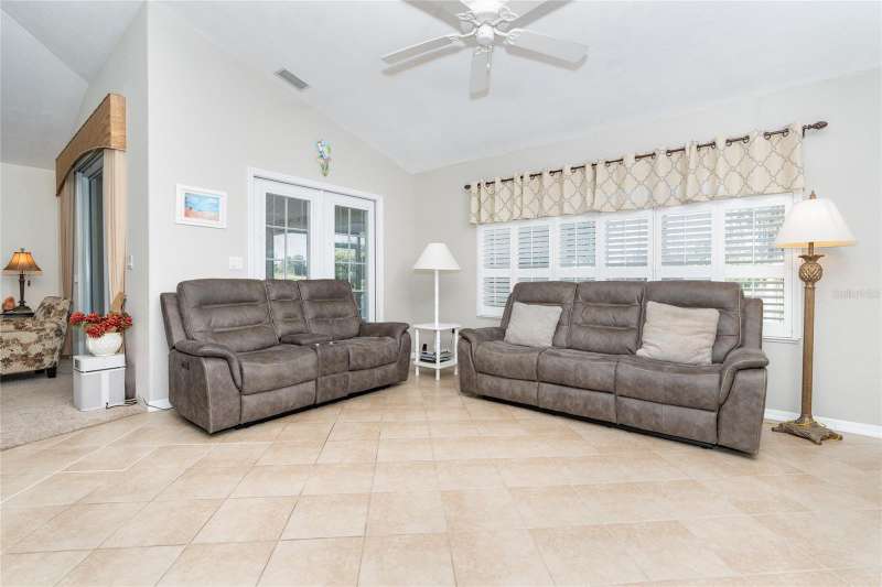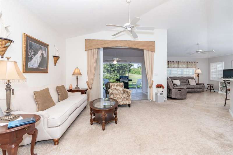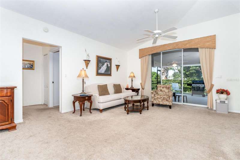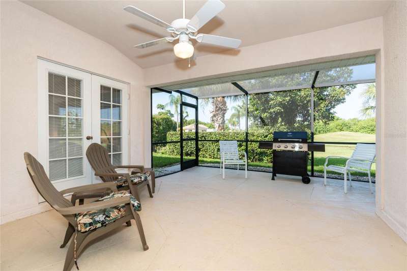 HUGE PRICE IMPROVEMENT & BEING SOLD TURNKEY FURNISHED! Welcome to your piece of paradise LOCATED ON THE 5th GREEN of the prestigious OYSTER CREEK GOLF COURSE. In one of Englewood's most desired communities, this 3 BEDROOM, 2 BATHROOM home is situated on a spacious CORNER LOT with lush landscaping, complete with an irrigation system. SOLD TURN-KEY FURNISHED, this home offers ease and comfort from the moment you step inside. A 2-10 HOME BUYERS WARRANTY IS INCLUDED with the sale, and is VALID FOR 1 YR. FROM DATE OF CLOSING, TO A NEW BUYER! A NEW ROOF WAS INSTALLED IN 2024, NEW A/C IN 2020, and this PROPERTY IS LOCATED IN AN X FLOOD ZONE & NO STORM DAMAGE WAS EXPERIENCED AND SITS HIGH & DRY! The tiled foyer invites you into an open living and dining room with cathedral ceilings, offering an airy feel and views of the private yard and screened lanai. Enjoy the natural light flowing through the POCKET SLIDING GLASS DOORS, complete with lovely window treatments, and FRENCH DOORS complete with interior adjustable blinds. The private screened lanai is just perfect for enjoying your morning coffee, or those cooler days when BBQ's and outdoor family time are planned. The cozy family room, with its stylish PLANTATION SHUTTERS is perfect for those quiet movie nights, snuggling up with a good book, or watching your favorite sports team on TV, and opens to the lanai through French doors. While the CHEF'S DELIGHT KITCHEN features a breakfast bar, GRANITE COUNTERTOPS, an abundance of cupboards and drawer space, above-cabinet lighting, large CLOSET PANTRY, and eat-in area, it is big enough to have more than one person doing the cooking and entertain your family and guests with a delicious meal! The primary bedroom is spacious and private with 2 CLOSETS, TRAY CEILING, PLANTATION SHUTTERS and French doors leading to the lanai. The EN SUITE BATHROOM offers a large walk-in closet, a large mirrored double vanity, walk-in shower, and separate water closet. The guest bedrooms are private, as a pocket door closes off the hallway and guest bathroom. One guest bedroom is equipped with a MURPHY BED, making it a versatile space that can also serve as an office. This ideal home boasts an INTERIOR LAUNDRY ROOM and pristine garage, complete with a HURRICANE RATED GARAGE DOOR AND SCREENED SLIDING DOORS. A CLUB CAR GOLF CART, with newer tires and batteries, plus so much more, is also included in the sale of this home! Hurricane shutters on the rear family room windows provide added protection and peace of mind. Oyster Creek residents have access to a Community Center, complete with heated pool, spa, library, rec room, fitness center, and tennis/pickleball courts. The golf course, while not affiliated with the HOA, winds throughout the community, making all of Oyster Creek GOLF CART FRIENDLY. This community is CLOSE TO THE FINEST BEACHES, including Boca Grande, Englewood, & Manasota Key, Historic Dearborn St., and is surrounded by locally owned restaurants with the best of dining & entertainment - not to mention world-class FISHING, BOATING & GOLF. Discover the charm of this quiet neighborhood while being conveniently close to the best that Englewood area has to offer...SELLER IS MOTIVATED..schedule your showing today!
