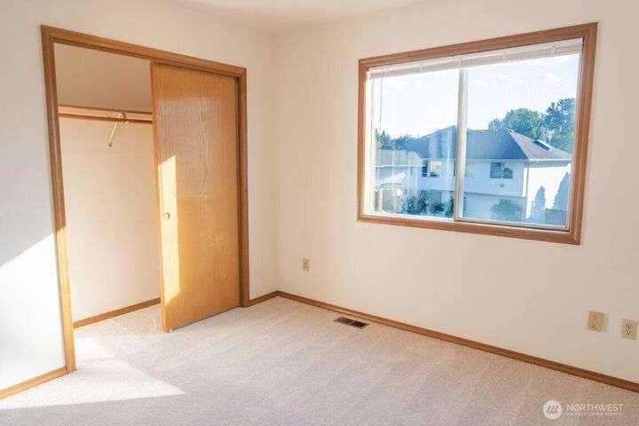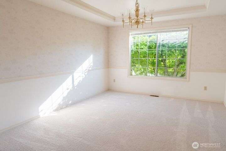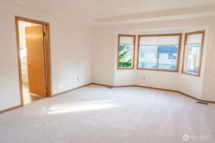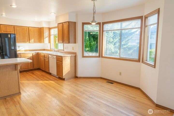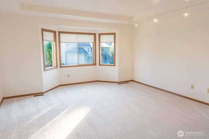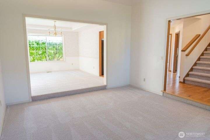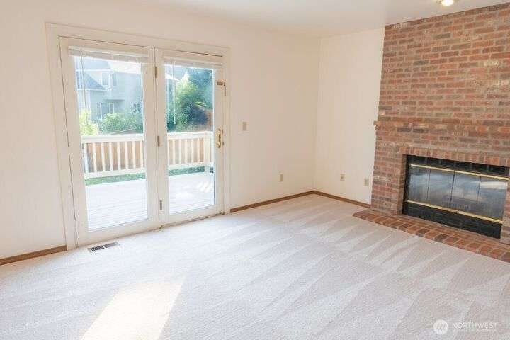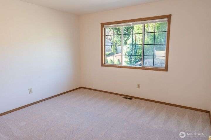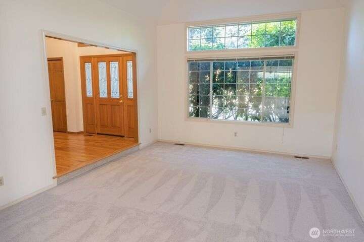 Available now! Spacious Two-story home with Vaulted ceilings. Newer carpet and newer blinds through out. Formal Living room and Dining Room with wide staircases at the entry. Kitchen has eating area and hardwood floors. Wood burning fireplace in the family room and French doors open to deck and fenced back yard. Upper floor with 3 bedrooms. Extra large main bedroom with bath suite and 2 walk-in closets. 3 car garage, close to parks and Bellevue schools. No Pets-FIRM.