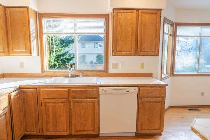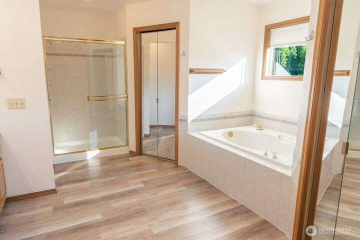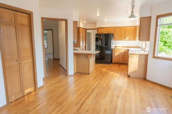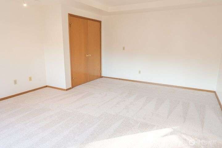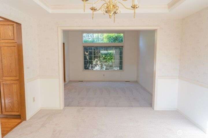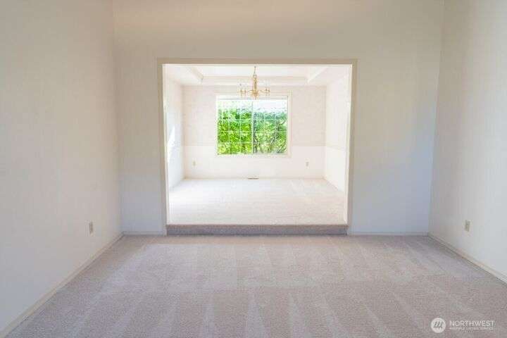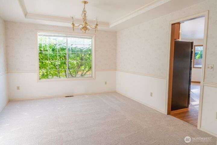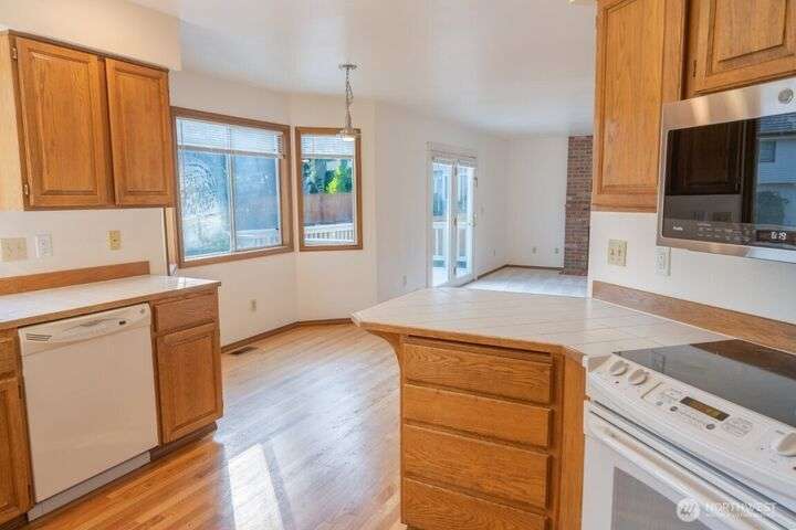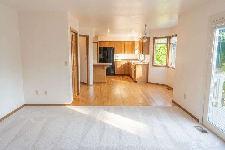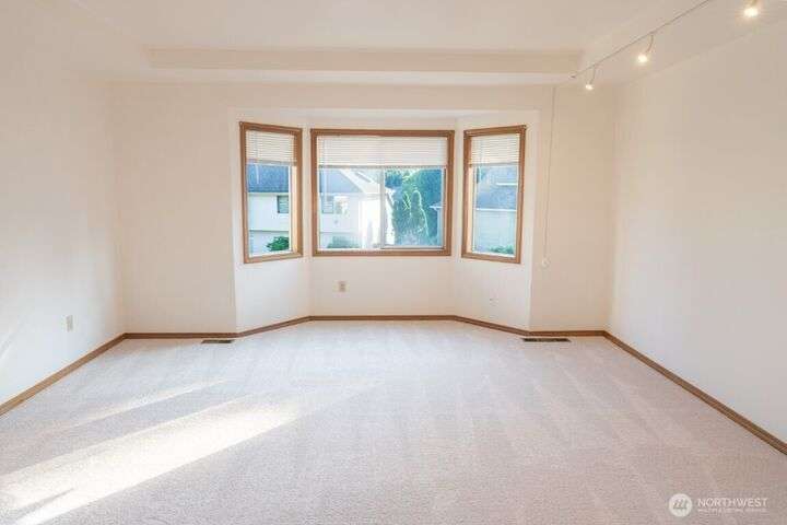 Available now! Spacious Two-story home with Vaulted ceilings. Newer carpet and newer blinds through out. Formal Living room and Dining Room with wide staircases at the entry. Kitchen has eating area and hardwood floors. Wood burning fireplace in the family room and French doors open to deck and fenced back yard. Upper floor with 3 bedrooms. Extra large main bedroom with bath suite and 2 walk-in closets. 3 car garage, close to parks and Bellevue schools. No Pets-FIRM.
