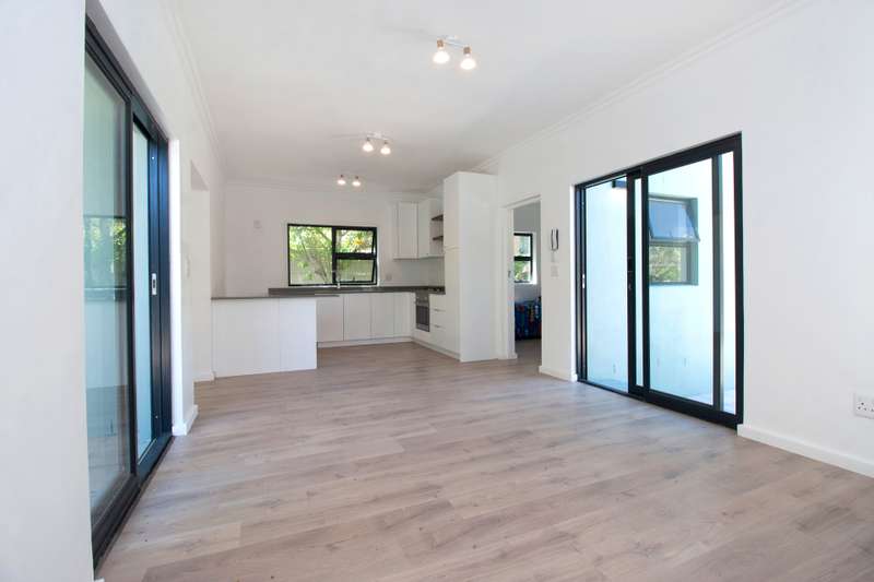 *** OFFERS FROM R1 895 000 *** This newly built, contemporary ground-floor apartment is perfect for indoor-outdoor living. You enter a bright open-plan lounge, dining, and kitchen area which seamlessly flows into a charming garden courtyard through glass sliding doors. The kitchen is fitted with Caesarstone counters, ample cupboard space, and is plumbed for a dishwasher, featuring an electric oven and gas hob. The second bedroom is located to the right side of the kitchen, filled with natural light. Down the passage, sliding doors enhance the flow between the living space and the courtyard. On the right is a guest loo next the family bathroom which is fully tiled and plumbed for a washing machine, complete with a shower, vanity, toilet, and basin. At the end of the hallway, the main bedroom opens onto the courtyard, allowing in an abundance of warmth and light. The apartment has aluminum windows and doors throughout, laminate flooring, and a solar-powered hot water geyser. With off-street parking for two cars and electric fencing, this is the perfect lock-up-and-go, investment, or a place to call home. Book a viewing today to avoid disappointment.