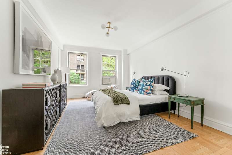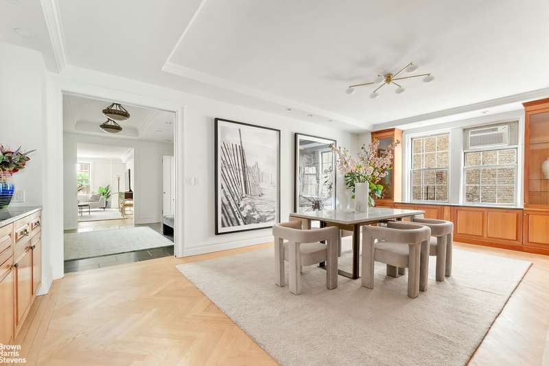 This elegant prewar co-op offers approximately 2,200 square feet of refined living space, perfectly designed for entertaining and everyday comfort. The apartment's traditional layout features formal rooms with high ceilings and beautiful moldings, making it  an ideal setting for hosting memorable gatherings. The expansive living room easily accommodates a grand piano and features beautiful bookcases. The formal dining room, outfitted with elegant custom built-ins, comfortably accommodates large gatherings, ideal  setting for dinner parties and celebrations of any kind. East-facing windows flood the spaces with beautiful morning light and offer charming views over tree-lined West End Avenue.
