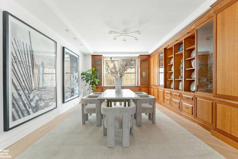 This elegant prewar co-op offers approximately 2,200 square feet of refined living space, perfectly designed for entertaining and everyday comfort. The apartment's traditional layout features formal rooms with high ceilings and beautiful moldings, making it an ideal setting for hosting memorable gatherings. The expansive living room easily accommodates a grand piano and features beautiful bookcases. The formal dining room, outfitted with elegant custom built-ins, comfortably accommodates large gatherings, ideal setting for dinner parties and celebrations of any kind. East-facing windows flood the spaces with beautiful morning light and offer charming views over tree-lined West End Avenue.