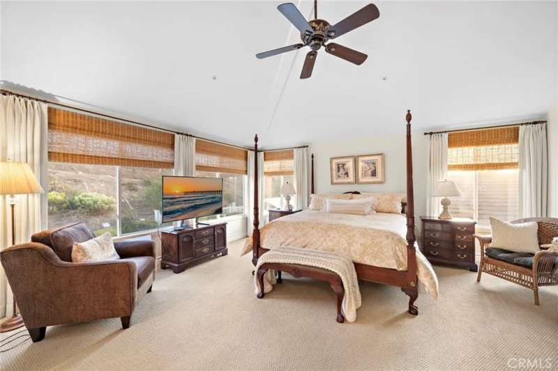 Welcome to 402 El Vuelo, San Clemente a pride of ownership, single family home, offering privacy, comfort, and coastal charm. Tucked away in the scenic Hills of Rancho San Clemente Estates this beautifully updated home enjoys ocean breezes and no rear neighbors, creating the perfect setting for indoor outdoor southern California living. Abundant natural light fills the home through dual pain windows, and sliding glass doors, highlighting, serene cathedral ceilings, 18 inch travertine tile and Berber carpets, and modern finishes throughout. The thoughtfully designed kitchen features granite countertops, a center island, custom cabinetry, and a walk in pantry with stunning stained glass door, all flowing seamlessly into the family room with fireplace, and quaint eating area for non-formal dining. The lower level also includes, a formal living room, formal dining room, and an updated bath featuring a pedestal sink, and walk-in tiled, shower with seat. You will also find a versatile downstairs bedroom or office which offers double French glass doors, a ceiling fan, and ample natural light (no closet). You have a separate laundry room with Kenmore elite gas washer and dryer, cabinets and a countertop. The hallway leads to an attach three car garage with shelving, and additional storage cabinets. Upstairs, the spacious primary suite offers a serene retreat complete with the walk in closet featuring new California closet organizers, dual sinks, walk in tiled shower with glass doors and a new luxurious step in soaking tub. You will also find plenty of hallway linen cabinets, and tw