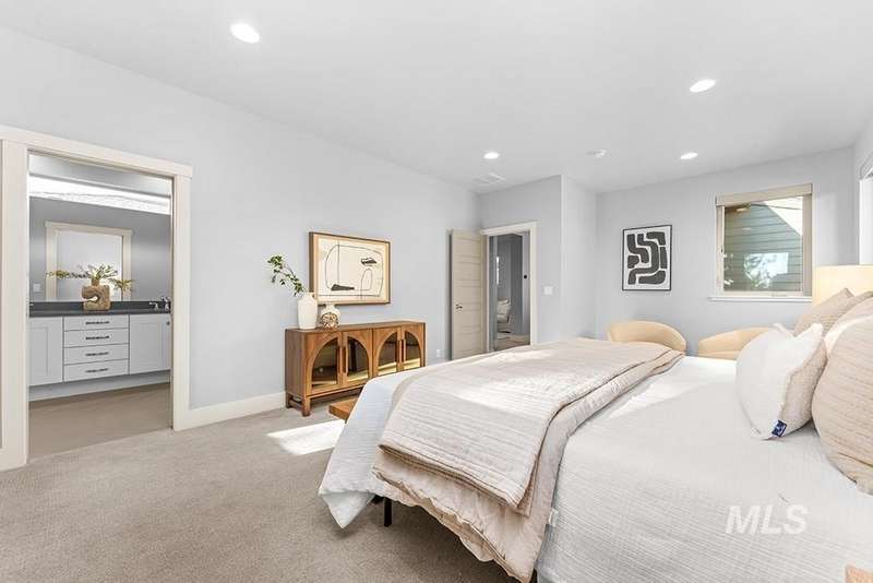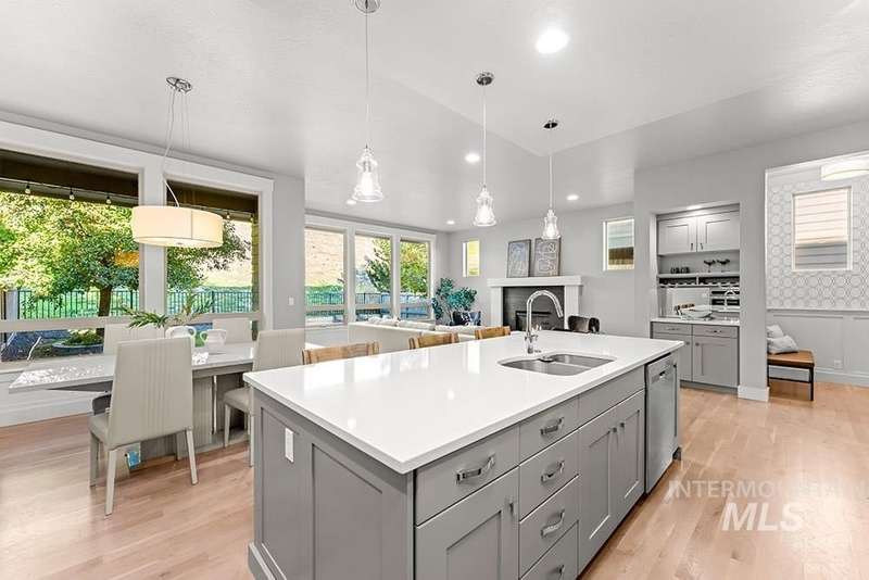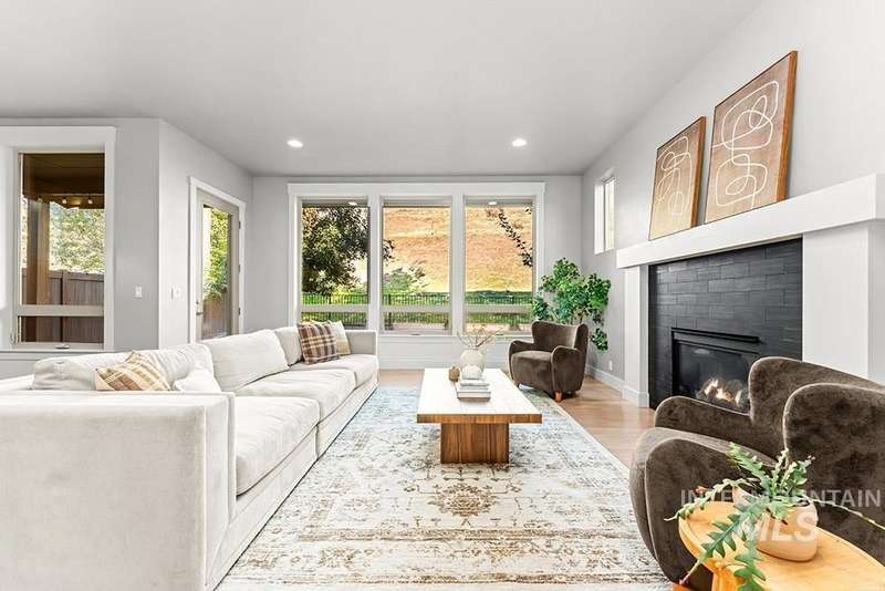 Discover this stunning move-in ready home tucked away on a dead-end street, offering complete privacy with foothills right in your backyard! Located in desirable East Boise, enjoy the Homestead trail right behind you, and the Boise River, Harris Ranch, Bown Crossing, and vibrant downtown Boise just minutes away. Step inside to a bright, open living space featuring soaring 10'+ ceilings, gorgeous hardwood floors, and walls of windows framing the breathtaking foothills beyond. The living room centers around a cozy fireplace, while the gourmet kitchen is designed for entertaining with an oversized island, quartz countertops, built-in stainless steel appliances, ceiling-height cabinetry, and a built-in bar area. Upstairs, the private master suite offers a spacious retreat with its own balcony, spa-like en suite bath, and large walk-in closet. Flexible spaces throughout the home provide room to spread out, including an upper-level bonus loft perfect for a home theater, playroom, or lounge, and a dedicated main-level office ideal for remote work. Enjoy tranquil evenings on the expansive covered patio, where the foothills feel like an extension of your backyard. The oversized 2.5-car garage includes a bump-out area for additional storage. Experience the best of SE Boise living with easy access to community amenities, including a neighborhood pool and nearby Ridge to Rivers trailheads.