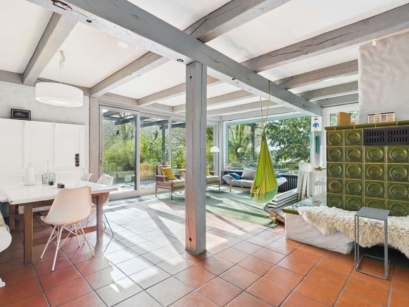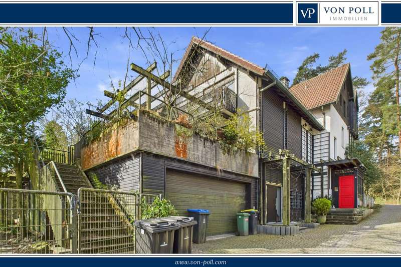 Characterful residential building, with up to 5 residential units, in a fantastic location on the edge of the forest in Detmold-Hiddesen! In one of Detmold's most sought-after locations - in the popular district of Hiddesen - you will find this exceptional residential building surrounded by greenery - with historical flair and a wide range of potential uses. The main house was built in 1904 and an extension was added in 1974 and 1979. The property has always been maintained so that it is in a predominantly well-kept condition. However, a few renovation measures are still outstanding. Take advantage of the opportunity for freedom of design and contribute your ideas. In addition to the usual basement rooms, there is an extension area of approx. 138 m² in the basement, which formerly consisted of a swimming pool with adjoining fitness area. A lower technical floor was also built to operate the swimming pool. The technical rooms - with solid walls - can even be described as bunkers today. Following an extensive conversion of the basement, two further units were created here - one of which is already rented out for residential purposes, while the second unit offers approx. 100 m² of usable space and can be used individually as storage, hobby or work space. A bright, charming apartment with a loggia was also converted on the top floor, which is currently rented out to students on a temporary basis. Note: The areas in the basement and attic are currently declared as usable space. Planning permission for the two apartments is currently being examined by means of a building application. If the application is approved, the official total living space will be approx. 400 m². All residential units have their own balcony or spacious terrace, which creates a friendly, light-flooded feeling of space. A special highlight is the spacious maisonette apartment on the ground and upper floors: the open-plan living area is complemented by a historic tiled stove, which provides cozy warmth and a unique living ambience, especially on cold days. A surrounding terrace of approx. 77 m² provides special design potential. This unit is currently occupied by the owner, meaning that it will be vacant upon sale and can therefore be put to new use immediately. The property has grown, been extended and modernized over many years. It deliberately differs from the classic "square building": the individual architecture, well thought-out room layout and historical details give the property its very special charm - ideal for people with a penchant for the extraordinary. Regardless of whether you are looking for an attractive investment property that offers potential for full occupancy or whether you want to realize a concept for multi-generational living - everything is possible here. The location right on the edge of the forest makes this property particularly attractive for both tenants and owner-occupiers. At the same time, you benefit from an excellent infrastructure with proximity to shopping facilities, public transport, schools, nurseries and medical care. Conclusion: Unique residential building with history, charm and prospects - ideal for investors, families or individualists looking for something special.