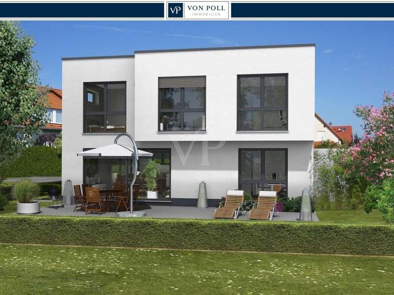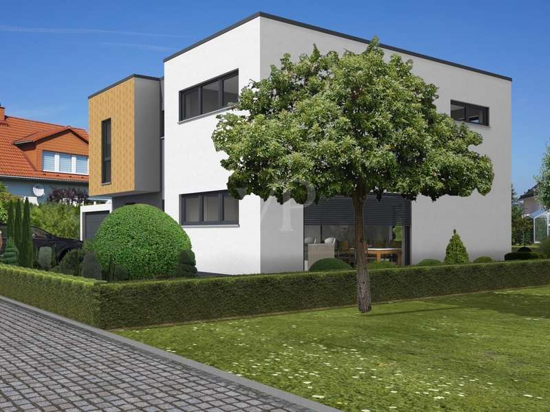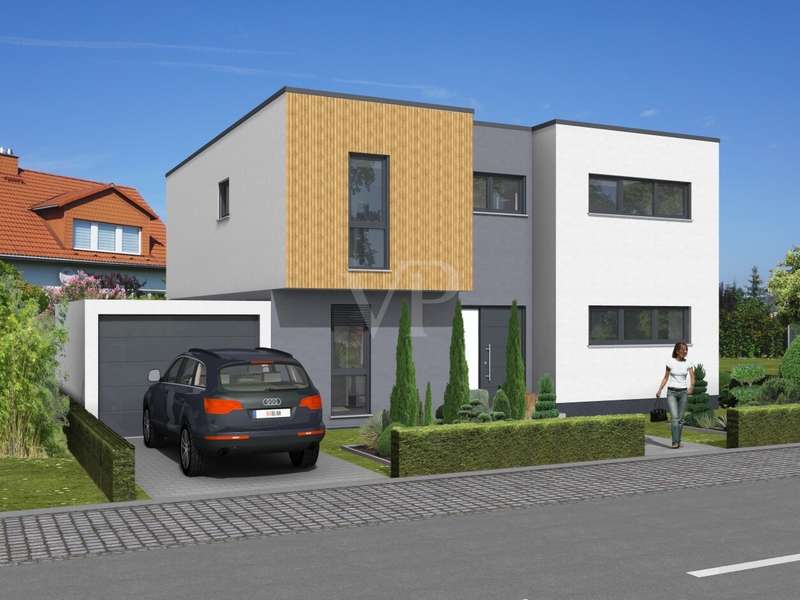 This planned detached house combines contemporary architecture with a modern and sustainable construction method. On a plot of around 439 m² in an attractive residential area, a house is being built that offers space for individual living arrangements and is characterized by high energy efficiency. With a generous living space of approx. 222 m² and a total of six well-designed rooms, the house concept will appeal to both families and couples who value a light-flooded and comfortable living environment. The building is constructed to the latest energy standards using a highly efficient heat pump. Underfloor heating in all living areas ensures a pleasant indoor climate. The triple-glazed windows reduce heat loss and contribute to energy savings, and the interior and painting work as well as all floor coverings are included in the price so that you can move in ready to move in. On the first floor, you will find a spacious living and dining area with an open-plan kitchen, which is particularly bright and friendly thanks to its large windows. There is space for the whole family to spend time together here. A separate room can be used as a study, guest room or playroom. There is also a fully equipped bathroom with high-quality sanitary facilities from the Connect Air design series or similar. All bathrooms are delivered fully equipped and offer you comfort right from the start. There are four spacious bedrooms on the upper floor, which can be used in different ways - as a master bedroom, children's room or study. The second daylight bathroom is also modern and offers plenty of space for the whole family. Additional storage space is provided by the full basement, which offers the best conditions for a variety of uses thanks to the white bathtub - whether as a hobby room, practical home office or leisure room.