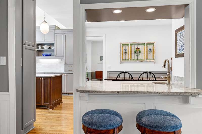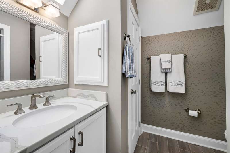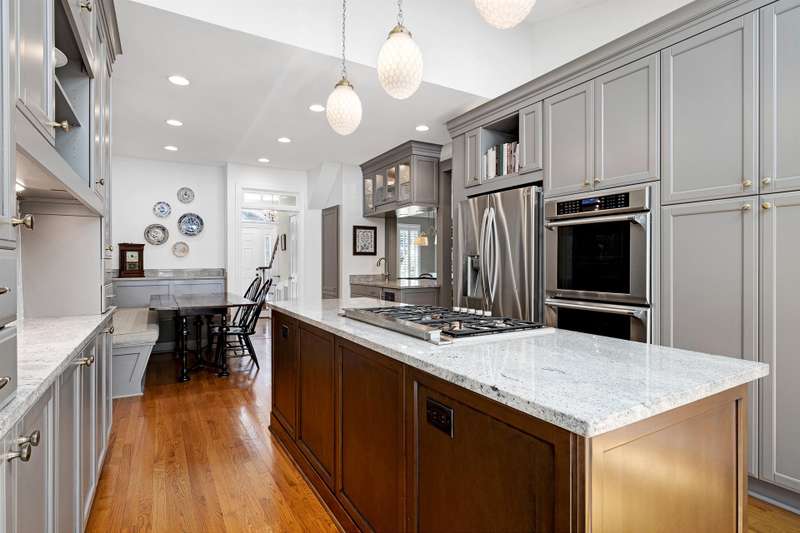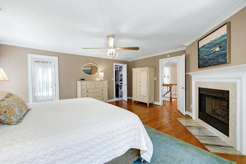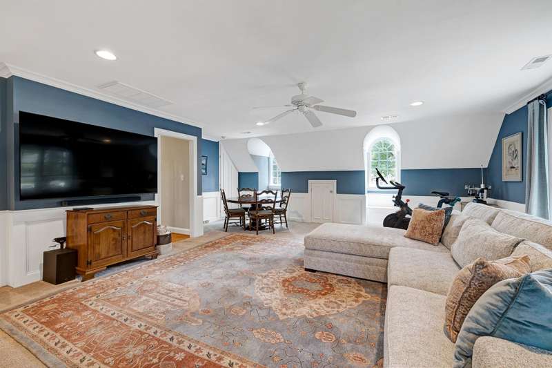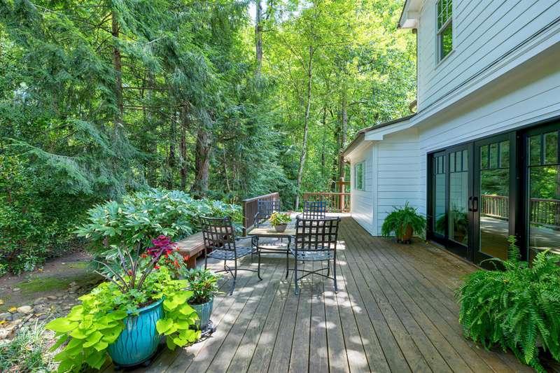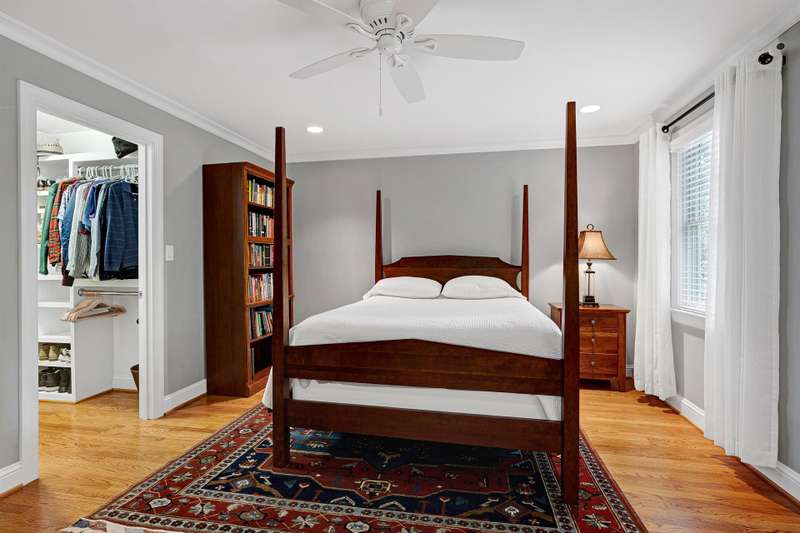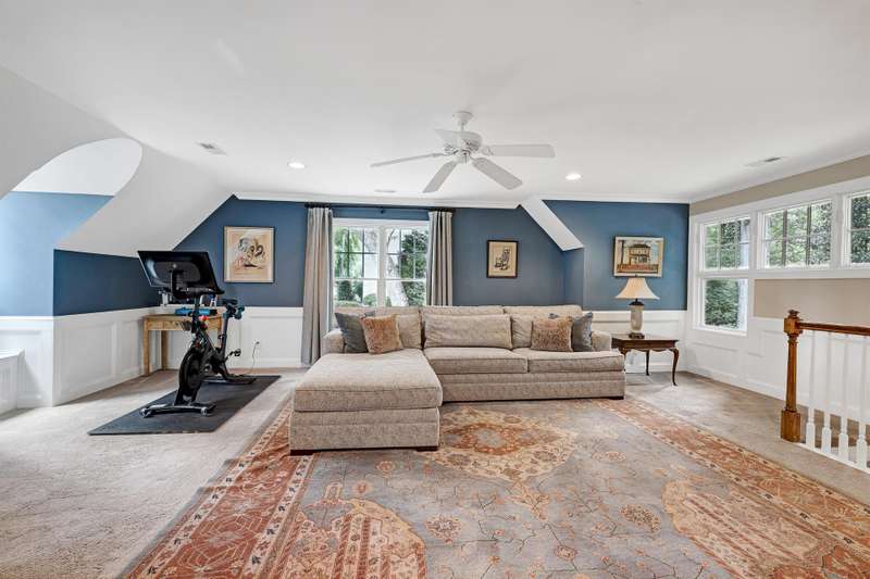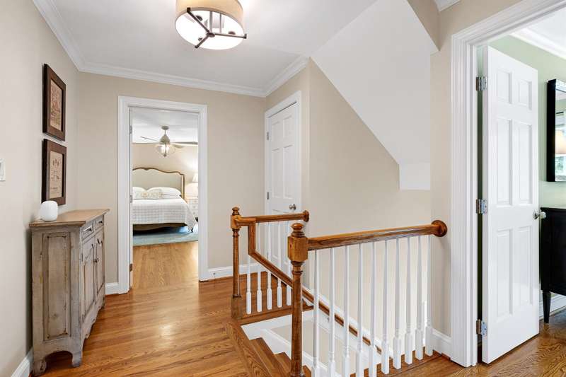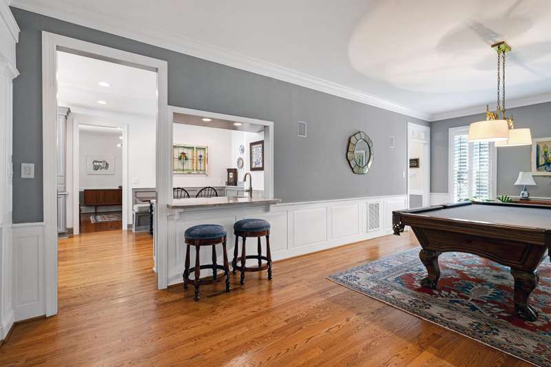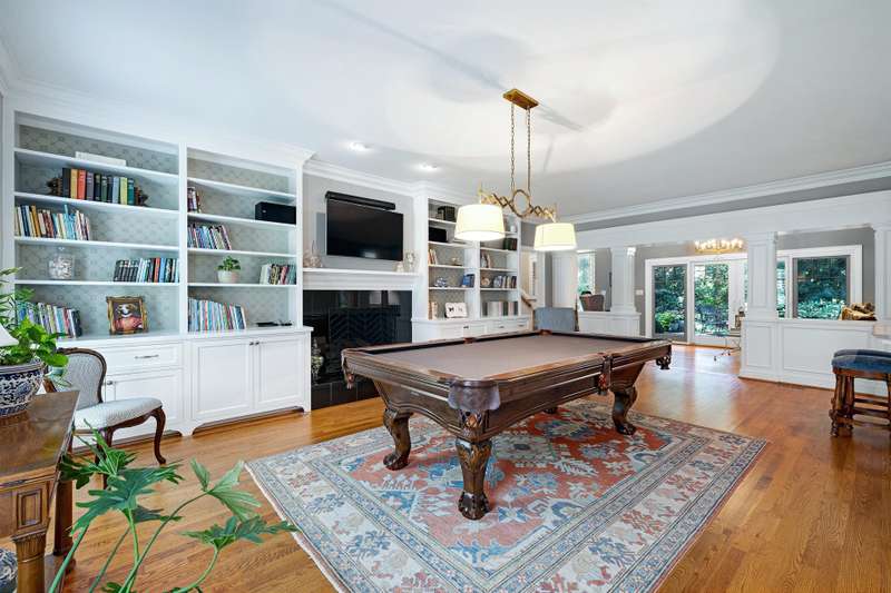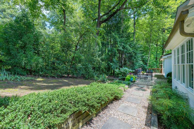 Set on a peaceful cul-de-sac with no through traffic, this 4-bed, 4-bath home offers nearly 4,300 sq ft of beautifully updated living. A major two-story rear addition expands the living space with a renovated kitchen and double sunrooms. All new Pella windows, new skylights, updated HVAC systems on every level, and major plumbing replacement mean the big projects are done. Quiet location, quality finishes, and a strong price point make this one of the best values in North Raleigh.Light-filled interiors begin with a welcoming foyer and continue into a versatile living/billiards room with built-ins and a gas fireplace. The formal dining room features a beamed ceiling and space to host a crowd. The kitchen includes a center island, gas cooktop, wet bar, granite counters, new skylights, and a sunny breakfast banquette. Two adjoining sunrooms create relaxed spaces for reading, entertaining, or enjoying the quiet setting. The primary suite offers a fireplace, double closets, and a newly renovated bath. Upstairs are two additional bedrooms, a full bath, and a spacious bonus room with rear-stair access. The third floor provides a private guest suite with full bath. Outside, a two-level deck overlooks a landscaped yard with magnolias, hydrangeas, and towering oaks, backing to a creek and forest.