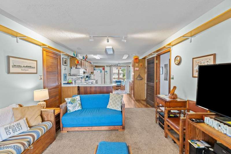 This fully furnished property has been in the same family since 1985, and now it's your chance to start making your own beach memories! Located on the second row with ocean views, the home features 4 bedrooms and 2 bathrooms, offering plenty of space for family and guests. The split floor plan includes two bedrooms, a bathroom, and privacy doors on each side for added comfort. Enjoy ocean views from the spacious front deck, or relax on the large back deck. Underneath the home, there's ample parking and plenty of space to create your ideal outdoor retreat. The convenient location offers easy access off the island to Southport, Wilmington, and Myrtle Beach. Don't forget to look up in the living and kitchen area to see the charming train that circles above. This property is part of a rental program, so showings may be limited based on tenant occupancy. Please note that artwork on the walls is excluded, but otherwise, the property is turnkey and ready for its next owner!