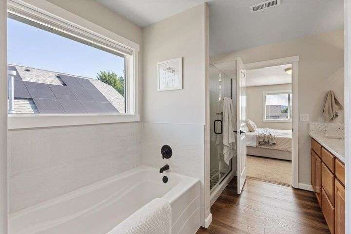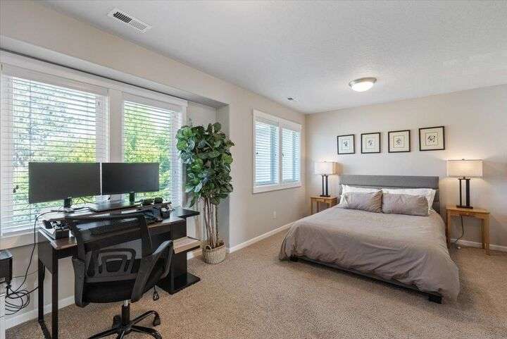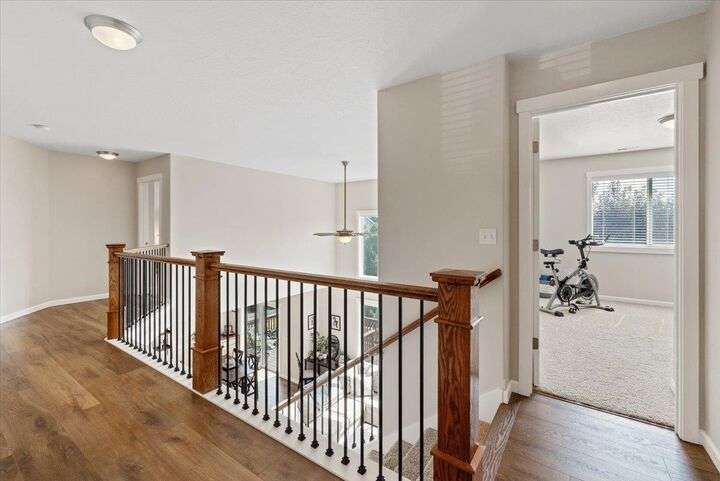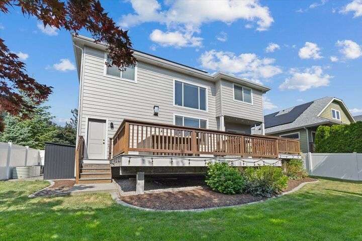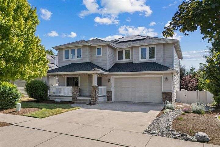 Beautifully maintained two-story home in a prime South Hill location, conveniently located close to fine dining, pubs, shops, & more. High ceilings & wide hallways create an inviting entry. The main floor features a spacious office with French doors leading to a front deck. A stunningly updated full bath & an open kitchen with custom cabinetry, granite countertops, a gas stove, & a walk-in pantry. The living room boasts a gas fireplace, large windows with automated blinds, & a seamless flow to the dining area. Upstairs, the open staircase leads to spacious bedrooms & a convenient laundry room. The primary suite features a newly updated bathroom with a separate shower & tub, a large closet, & a private water closet. One oversized bedroom has double closets, while two additional rooms offer ample space. With meticulous updates & improvements, to include bathrooms, new flooring, solar panel, new LP siding & exterior paint just to name a few. Don't miss out, this is a must see to fully appreciate.