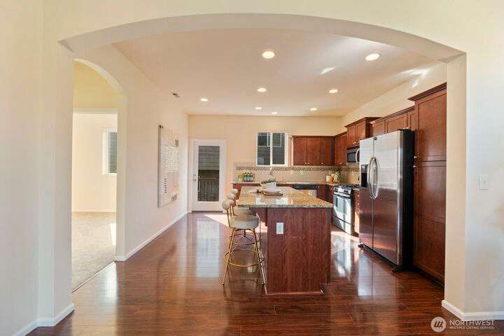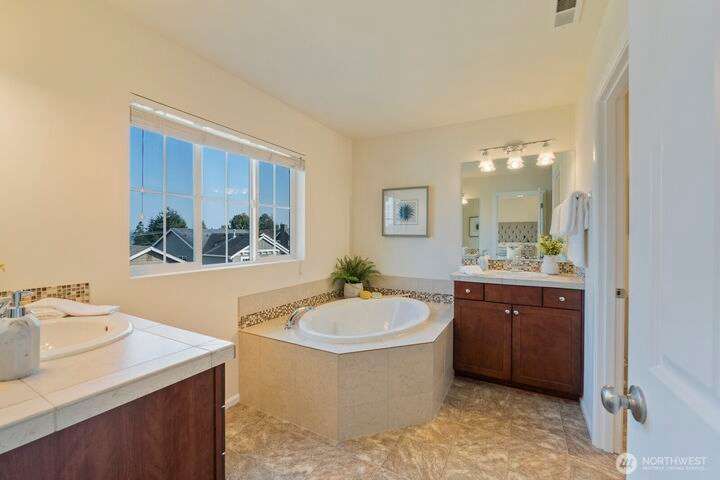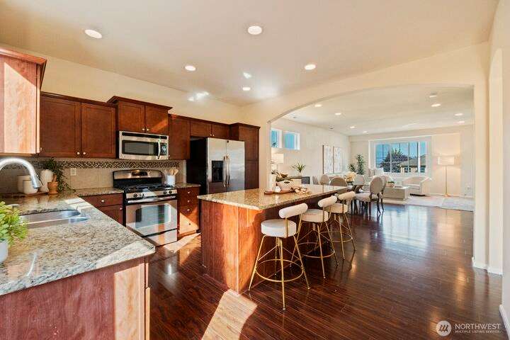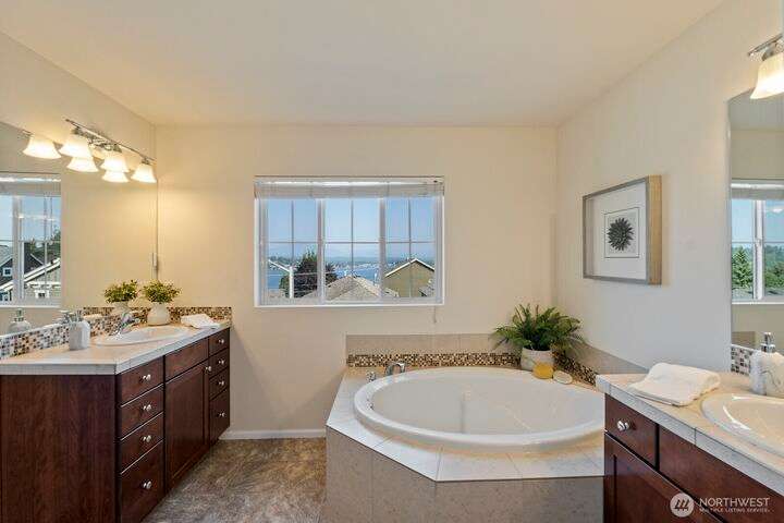 Wake up to BREATHTAKING VIEWS of the LAKE & MOUNTAINS in this beautifully designed 4-bed, 3-bath home. Perfectly positioned to capture the ever-changing colors of the lake & surrounding landscape, this home blends COMFORT, STYLE, & CONVENIENCE. The spacious, light-filled layout offers room to relax or entertain. A chef-inspired kitchen flows seamlessly into dining & living areas, making gatherings effortless. Retreat to the primary suite w/ its serene lake views & spa-like bath, or enjoy the flexibility of 3 add'l bedrooms & extra space in the XL GARAGE ideal for a home gym or hobbies. Just minutes to SHOPS, RESTAURANTS, & EVERYDAY AMENITIES, enjoy the best of both worlds—peaceful LAKESIDE LIVING w/ the convenience of nearby city comforts.