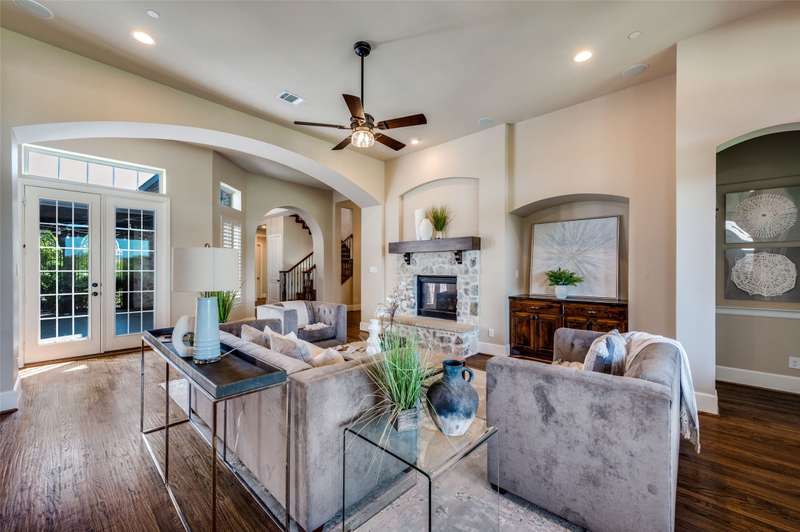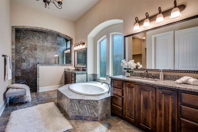 Stunning home by the lake at the end of a tranquil cul-de-sac in sought after Windsong Ranch. This distinguished residence backs to lush greenbelt visible from the expansive back windows and large covered veranda which features charming brick fireplace perfect for relaxation or relax in the beautiful front courtyard enclosed by elegant iron gate. Inside the chefs kitchen is a true centerpiece, with a breakfast bar that opens seamlessly to the family room and a spacious adjoining breakfast area complete with a coffee bar, perfect for casual gatherings or morning routines. The luxurious owners retreat provides a spa like bath with walk in shower, jetted tub and two walk in closets. A secondary bedroom on the main floor provides comfortable accommodation for guests, while a private study with French doors offers a quiet workspace. Upstairs you will find generously sized bedrooms with en-suite baths, a dedicated kids retreat and a large game-media room. Home features front and back staircases for convenience. Additional highlights include an oversized garage designed to accommodate a average 4x8 sized golf cart. This residence perfectly blends comfort, elegance and functionality an entertainers dream in Windsong Ranch. This amenity-filled community is renowned for its crystal-clear Lagoon, pickle ball courts, and jogging trails.