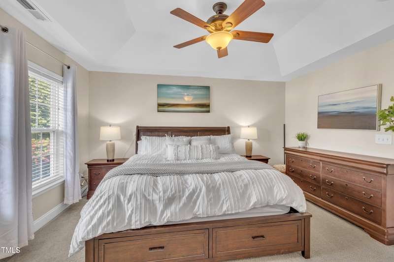 Over 50K in upgrades in last few years! LIKE NEW HOME in wonderful golf/swim/tennis community. Professionally installed sod. $9800 spent to upgrade master bath/marble floor shower. MANY updates including roof('25) water heater('25), upstairs flooring('25) HVAC('24) custom master shower w/marble floor ('24) Interior paint('22) Granite/bksplash/main level flooring/master bath vanity all 2021. New 2025 oven w/air fry functionality. New stove is elect smoothtop but has gas line if you want to convert. New sliding backdoor w/internal miniblinds. 2'' blinds throughout. New patio pavers in well kept, fenced backyard. Spacious 2 car garage w/built in storage shelves, cabinets, countertops. Home also features gutters. Professionally cleaned. Enjoy nhood golf, pool, tennis and community restaurant. See agent remarks about personal items.
