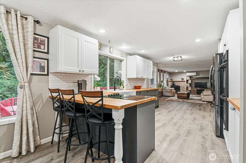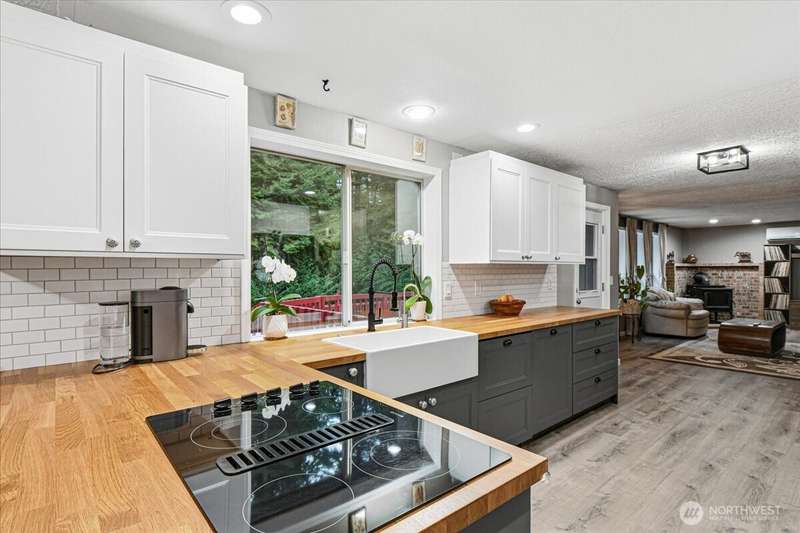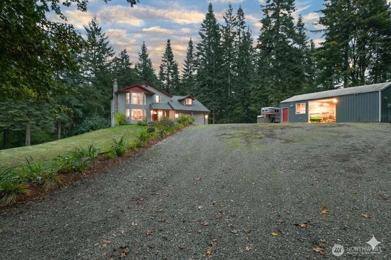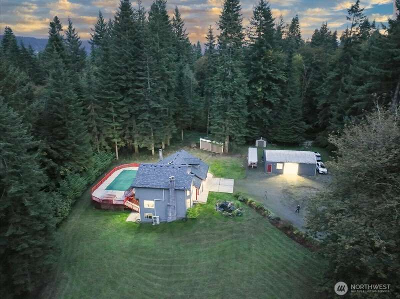 Valley View home. 5-acre lot, 10 mins from Lewis River Rec Area. LVP & WW Carpet. Wood-burning FP in LR & wood-burning stoves in both FR & Basement. Kitchen includes farm sink, SS Appliances, BI double ovens, butcher block CT, Eating bar. Upstairs~Primary suite, 3 additional bedrooms & Loft/Den. 2 Full & 2 Half Bathrooms, 3,271sf, includes daylight basement. Laundry Rm & 1/2 BA is in basement & plumbed wet bar. Outdoor offers Deck w/ BI pool, hot tub, RV park, shop, greenhouse, chicken coop, water feature, 2 car attached garage+2 car garage in shop area+storage shed+Firewood. 2022 Upgrades include new water heater, Ductless Heat Pumps, security gate, new roof on 3/4 of the house. Roof over the garage area is in excellent condition.