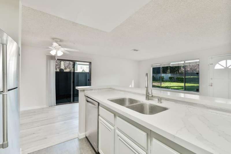 Presenting this beautifully maintained, condo the desirable community of Eagle Rock! Bright corner unit perfectly situated at back of complex. This single level unit offers a remodeled kitchen with stainless appliances, fresh designer paint scheme, beautiful new laminate flooring and in-unit washer/dryer. Enjoy an open floor plan and two patio areas perfect for entertaining. The community features two on-site pools with hot tub, assigned parking and walking trails for the outdoor enthusiast. Located minutes from CalTrain, VTA, major highways, Hayes Mansion and Village Oaks Shopping Center makes this the perfect place to call home.