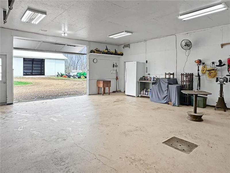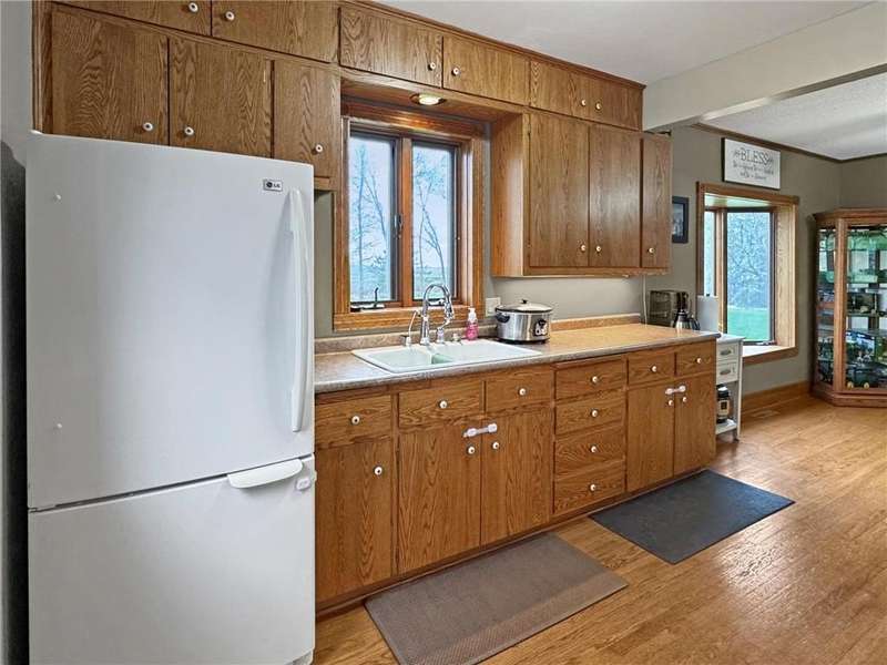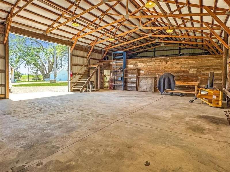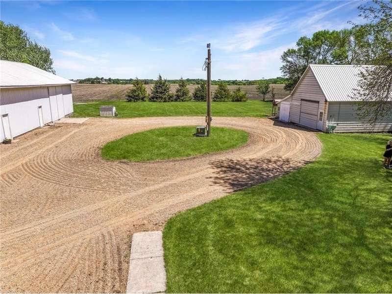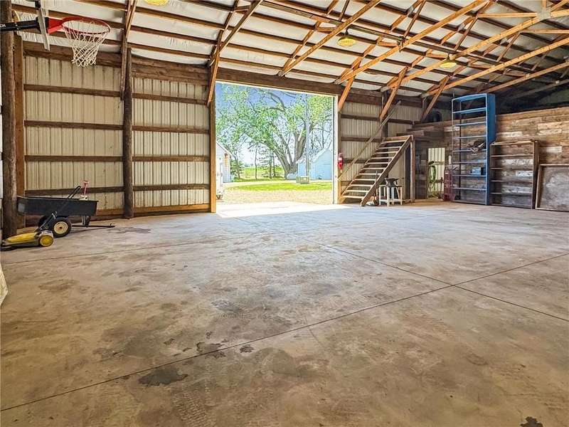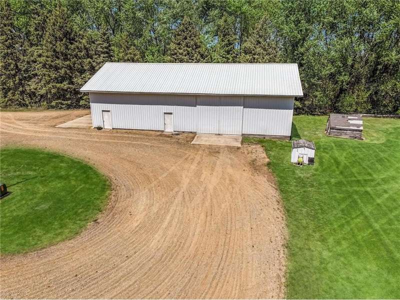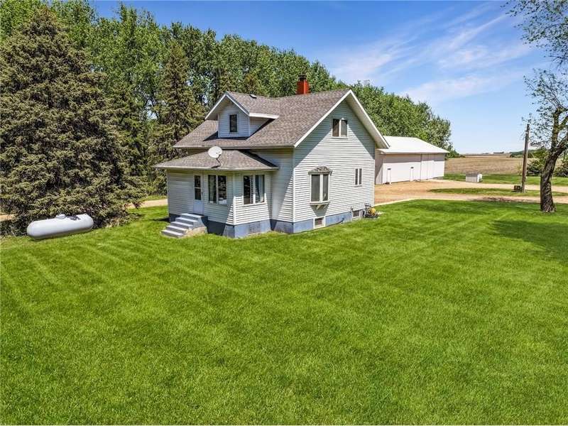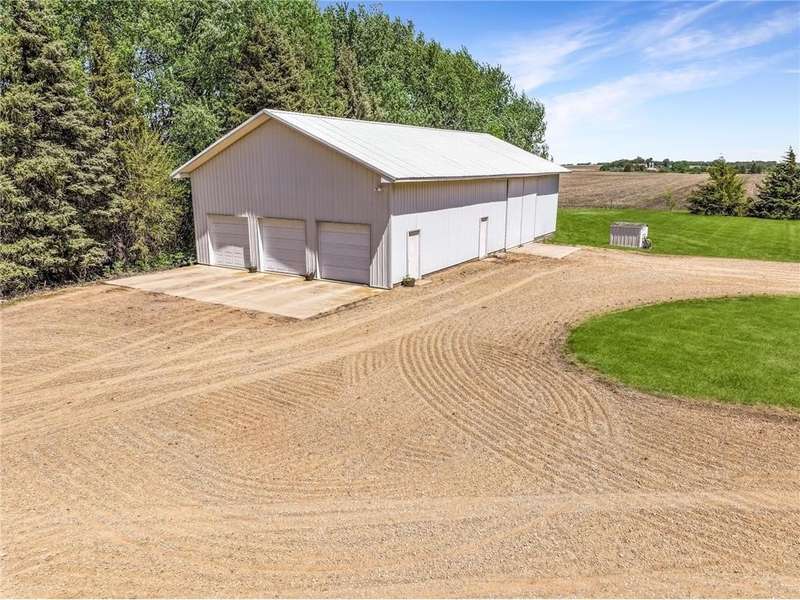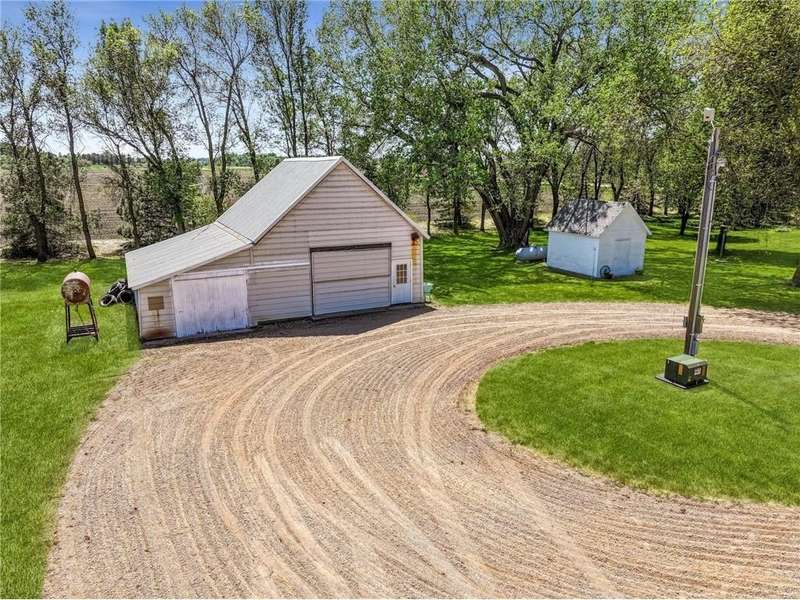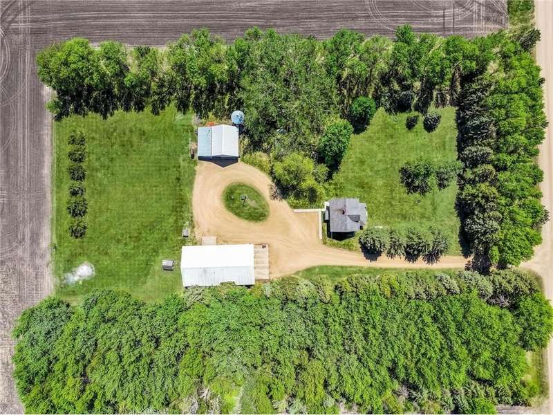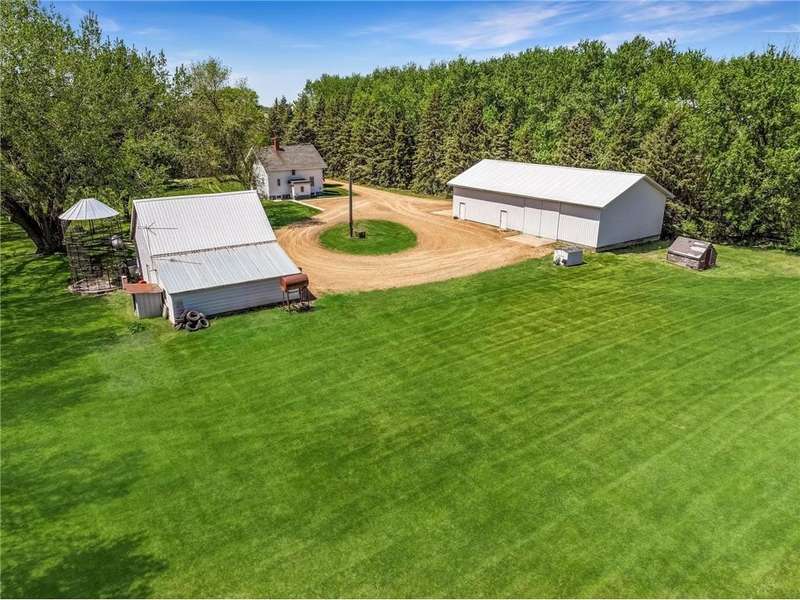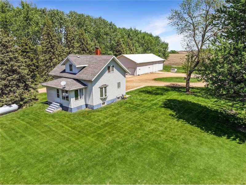 Secluded 4.26-Acre Acreage with Updated Home, Exceptional Outbuildings & Serene Setting. Tucked away on 4.26 acres, this peaceful country retreat is accessed by a long, tree-lined driveway of towering evergreens, creating a true sense of privacy and seclusion. This property offers the perfect blend of comfort, functionality, and rural charm. The well-maintained home features 2 bedrooms with the potential for a 3rd in the basement. Inside, you’ll find beautiful natural light throughout, highlighting the stunning hardwood floors in the kitchen and dining areas. The large living room offers plenty of space to relax or entertain, and recent updates include a brand-new furnace and A/C (2025) for year-round comfort. The home also boasts a compliant septic system, rural water, and a private well ideal for gardening — plus an established asparagus patch. What truly sets this property apart are the incredible outbuildings, designed for work, storage, and serious hobby space: 68’x36’ machine shed with concrete floors, full electric, and a spacious loft. One half offers cold storage, while the other side includes three large garage bays for vehicles, equipment, or recreational gear. 28’x36’ insulated and heated workshop with a 14’ lean-to, perfect for year-round projects. Bonus: an air compressor system built into the ceiling—ideal for mechanics or craftspeople. Outside, you’ll enjoy a well-kept lawn that’s both spacious and satisfying to mow, with open green space, privacy, and plenty of room to expand, garden, or simply enjoy the outdoors. This is the kind of acreage that doesn’t come around often — move-in ready, well-equipped, and ready for its next chapter.