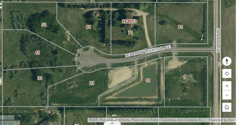 Limited Lots Remaining! Discover the perfect balance of tranquility and convenience in this highly desirable new 8-lot subdivision in Bearspaw. This exceptional 1.98-acre treed lot is nestled in a quiet cul-de-sac, offering privacy, natural beauty, and a true sense of escape—without sacrificing access to city amenities. There are no HOA fees and no building commitment, giving you the flexibility to design and build your dream home on your timeline. Utilities—including gas, electricity, water, and Telus services—are already at the property line for added convenience. Located just 30 minutes from downtown Calgary, this location offers the best of both worlds. Families will appreciate proximity to top-rated schools, including Bearspaw School (K–8) and the brand-new Renfrew Educational Centre currently under construction nearby. Secure your slice of Bearspaw paradise today—only a few lots remain!