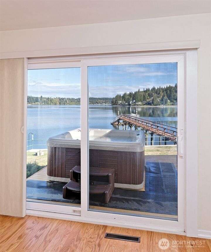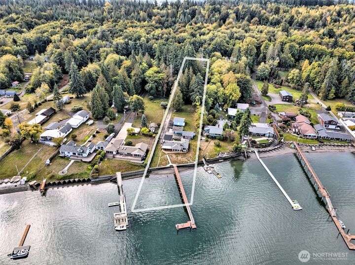What a great spot to unwind. When you get here, you will be amazed by the feeling of being miles out of town, but how close to town it actually is. This house has been brought forward in all of the right ways. Updated kitchen and bathrooms. Really well cared for hardwood floors. Floor to ceiling windows that maximize the view of the water. There is a well appointed, fully self sustained ADU with kitchen, living room, bedroom and bathroom. Tons of covered parking in the 2 detached garages. and Everything leads to the water where there is a private dock, a great bulkhead and pea gravel beach. This is South Sound living done right. Make an appointment today to take a look, you will be happy you did.