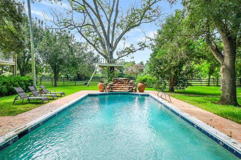 This stunning property in Brookshire, TX spans 4.17 acres with a spacious 7,800 sq. ft. home featuring 6 BEDROOMS, 4 full baths & 2 half baths. The fully fenced estate boasts a gated entrance and a generous double-wide driveway. Highlights include a gazebo, a GUEST HOUSE, and a two-story barn with 10 STABLES with lodging areas for horses and also a CORRAL. Enjoy the serenity of a man-made pond where you can fish for Bass & Catfish, a pool house with two dressing rooms, and a gorgeous pool with delightful water features. In the home, there is a GAMES ROOM & dedicated HOME THEATER. There is plenty of parking and a 5-car garage. The acreage offers so many opportunities; the home is 40 mins from DT Houston, less than 5 mins from the I10 but with the serenity, that living surrounded by green fields and nature brings. There is also ample space for entertaining - this exceptional property is a must-see. Don't miss your chance to explore it! WHEN COMING TO TOUR BRING COMFTY SHOES.